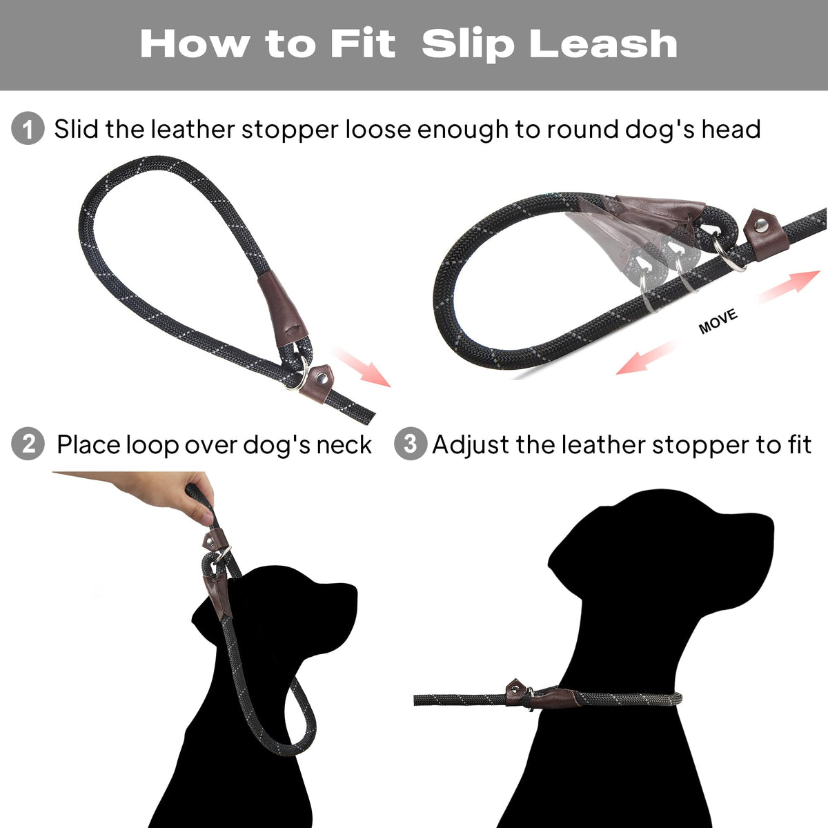 ?Multifunction and Convenient?Premium British-style slip lead.This dog slip lead with the adjustable loop you can adjust slipknot to fit any neck size no collar or harness needed extremely simple and easy to put on or off