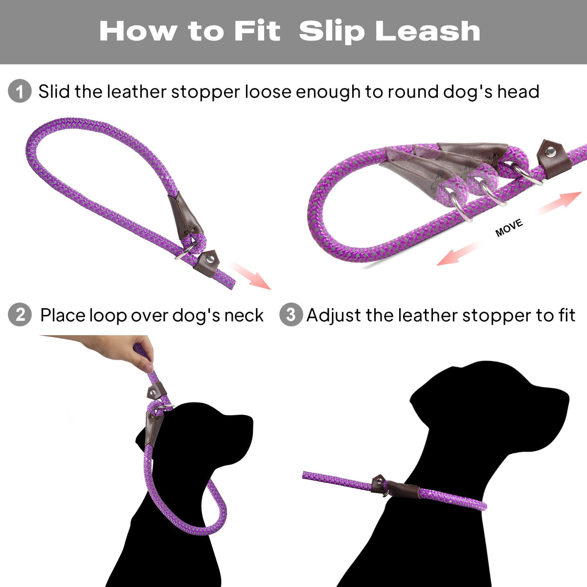?Multifunction and Convenient?Premium British-style slip lead.This dog slip lead with the adjustable loop you can adjust slipknot to fit any neck size no collar or harness needed extremely simple and easy to put on or off
