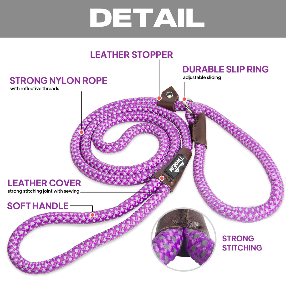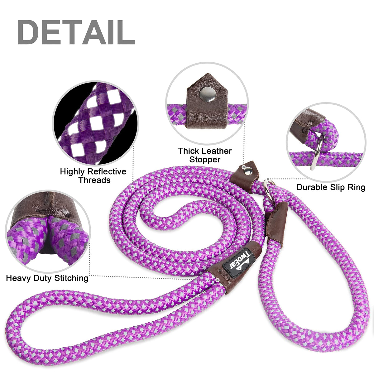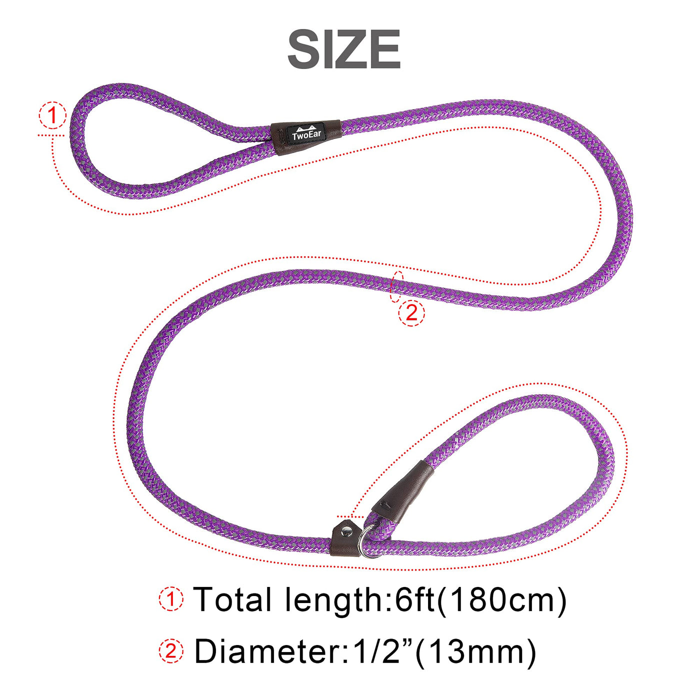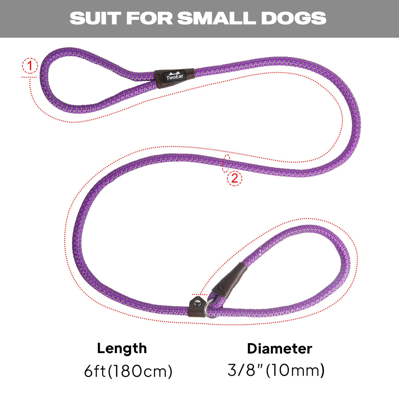 Twoear Dog Leash Dog Slip Rope Leash 6Ft Dog Training Leash Heavy Duty Strong Slip Lead Highly Reflective Threads For Small Medium And Large Dogs (Slim(3/8''X6Ft), Purple)