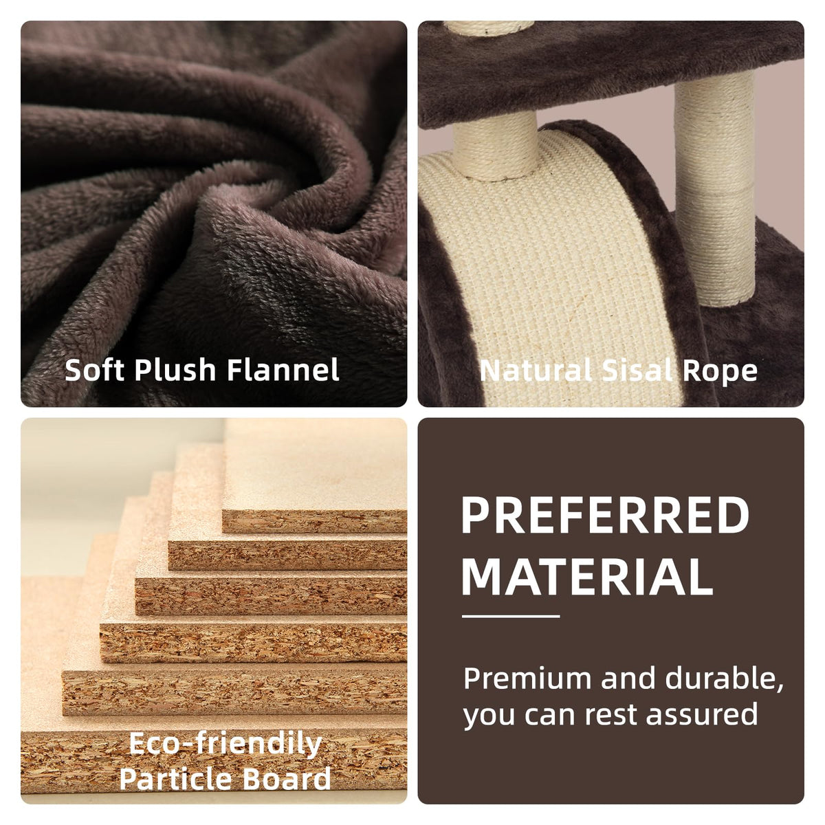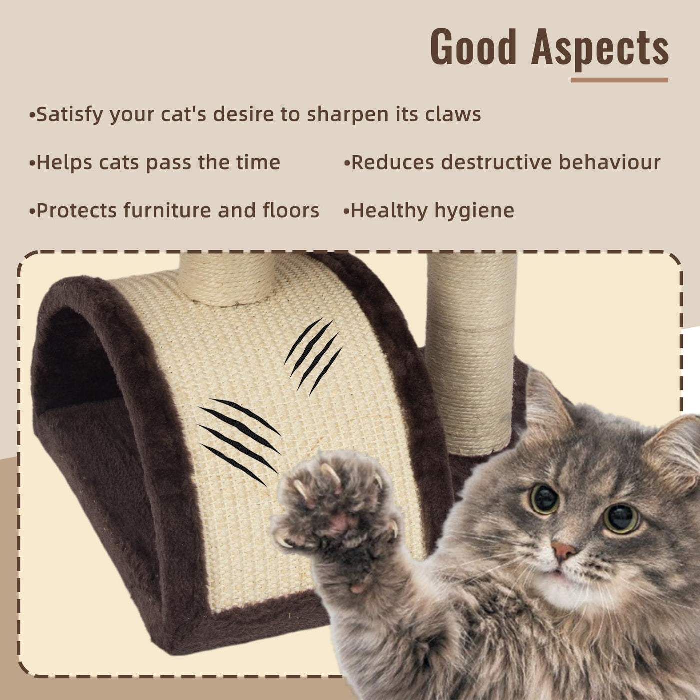 Large Viewing Perch The Top Perch Provide A Luxury Spot For Cat To Lounge And Relax.So It Can Offer Maximum Comfort For Cats To Survey Their Kingdom. And It Is Easy To Care Which Could Be Removed. Naturally Sisal-Covered Rope And Pad The Posts Are Covered With Natural Sisal Unique Handmade Natural Sisal, Which Is Strong Enough To Withstand Constant Scratches. So It Can Help Cats To Sharpen Their Claws And Prevent Cats From Scratching Furniture. Super Soft Plush Fabric Soft Plush Is The Best Habitat. Plush Cloth Covering The Surface Of The Cat Tree Is Skin-Friendly, Soft, Comfortable And Easy To Care For. Cats Can Roll On It Comfortably And It Can Provide Good Touch For Cats Lovely Paws.