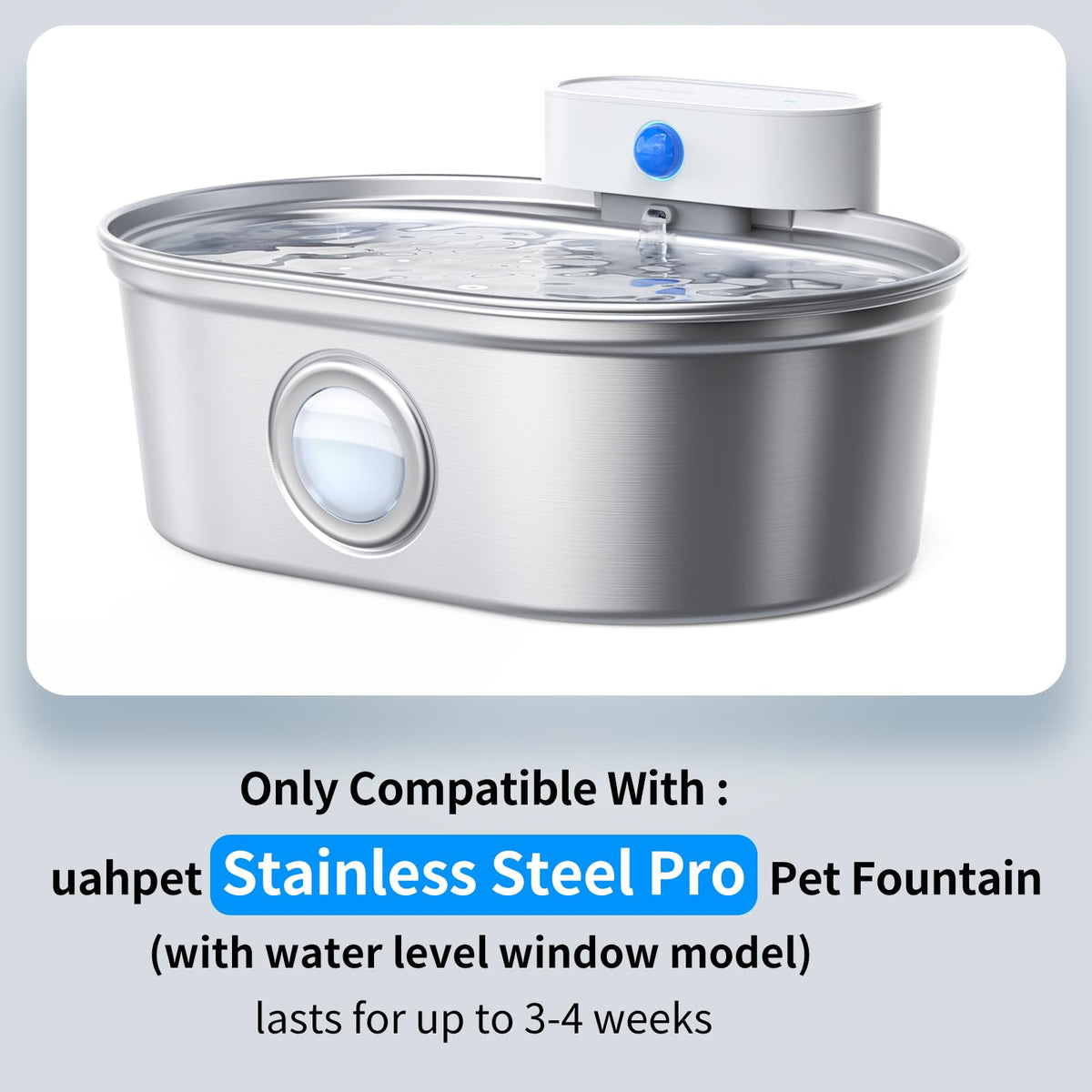 uahpet 6 Pack Replacement Filters & 8 Pack Replacement Filter Sponges for Stainless Steel Pet Fountain Pro (with water level win