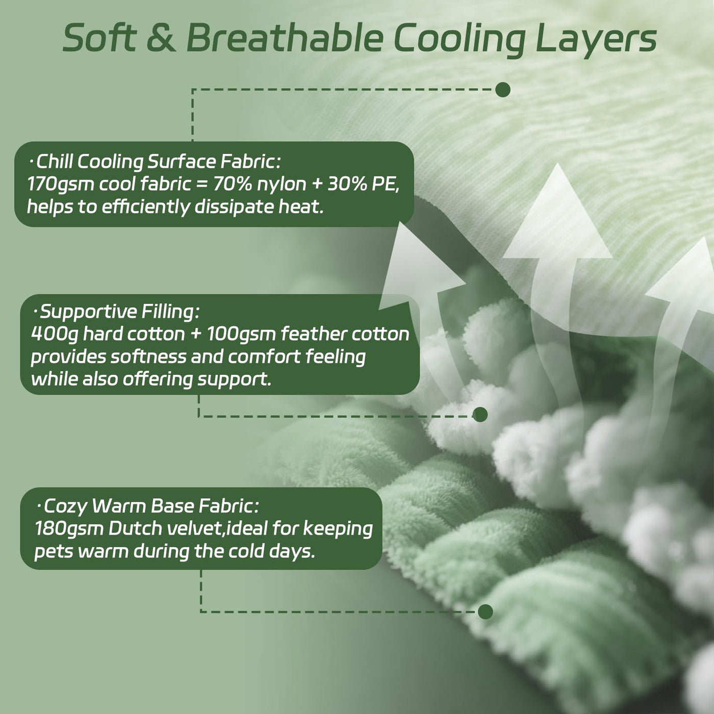 Uiqelys Dog Cooling Mat Ice Green, 91X58Cm No Gel, Cool Fabric Top & Velvet Back Cat Blanket, Washable, Dog Cooling Pad Availabl