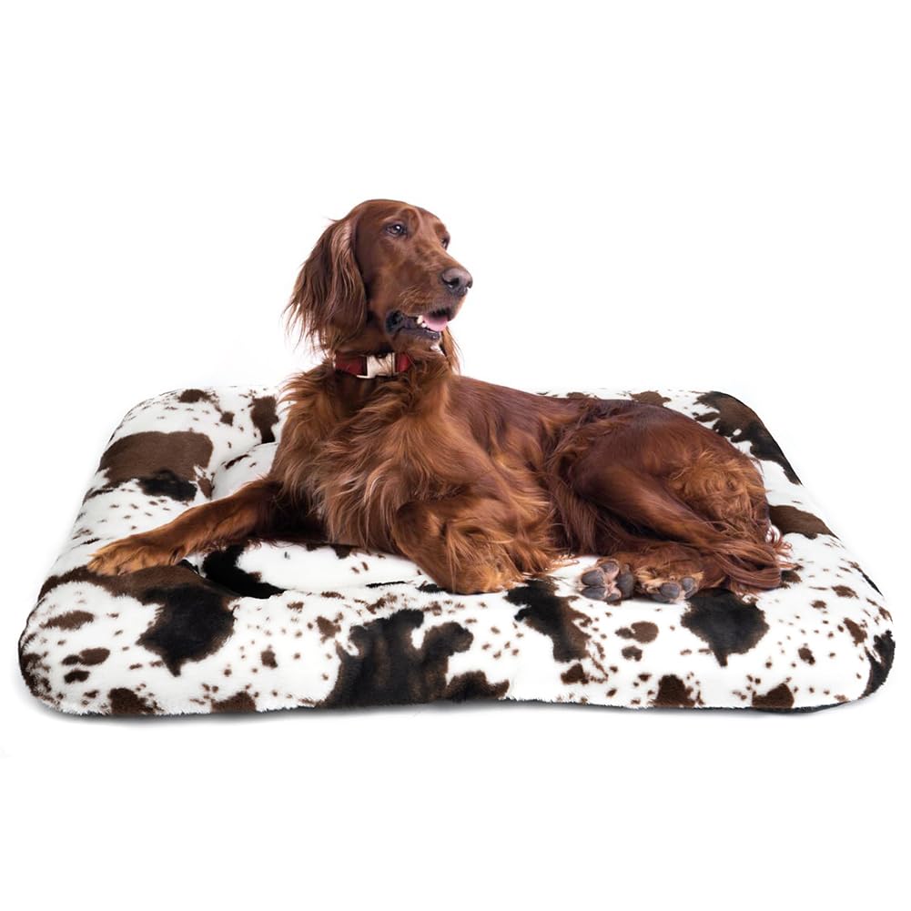 Uligota Dog Bed Crate Pad Soft Dog Crate Mat For Large Dogs Soft Dog Bed Anti Slip Kennel Pad, White/Brown