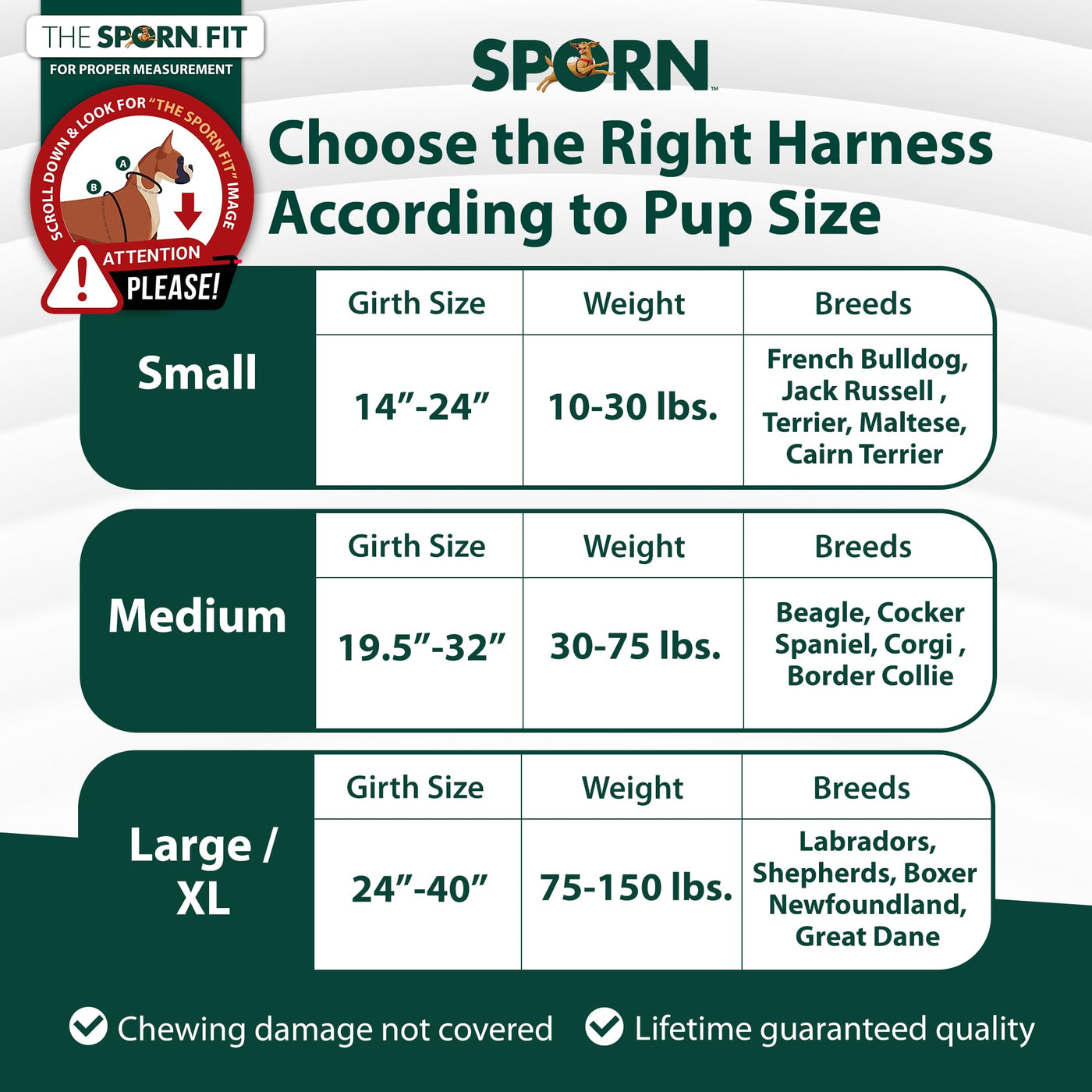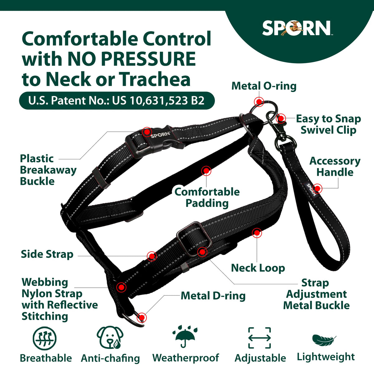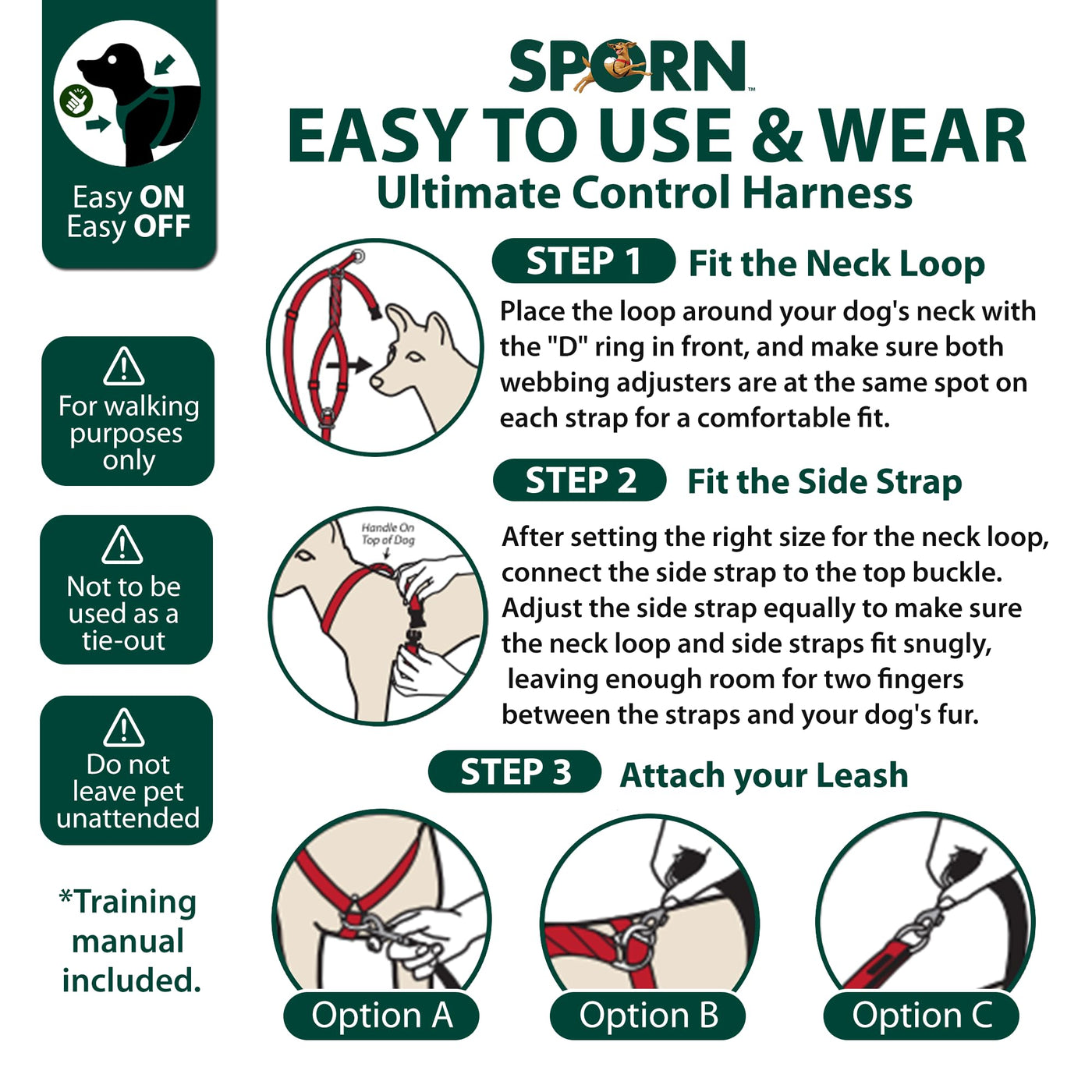 4 BUILT-IN CONTROL OPTIONS TO HUMANELY AND EFFORTLESSLY CONTROL YOUR DOG. Our control harness large breed comes with front, rear, traffic, and simultaneous control option, allowing you to control your pup effectively without extensive training. | AN EASY-GRAB HANDLE WITH REFLECTIVE STCHING LETS YOU WALK SAFELY AT NIGHT. Our harness large size dog features an easy-grab emergency handle padded for comfort and reflective stitching that improves safety and visibility while walking at night. | A LIGHTWEIGHT & DURABLE ULTIMATE CONTROL HARNESS THAT'S BUILT TO LAST. Our harness for large dogs is made of a lightweight, durable nylon material, which is easy to put on and guaranteed to start working instantly without intensive training. | CHOOSE YOUR DESIRED CONTROL HARNESS ACCORDING TO YOUR PUP SIZE. Our dog harness for large dogs are available in multiple colors and sizes to complement your style. Recommended girth size of 24-40 inches, or dogs approximately 75-150 pounds | WITH OVER 20 MILLION SPORN PRODUCTS SOLD WORLDWIDE. There's a reason why dog owners trust us! We offer a wide selection of dog supplies for healthier and happier pets, including our patented no-pull harnesses, durable chew toys, leashes, and more.