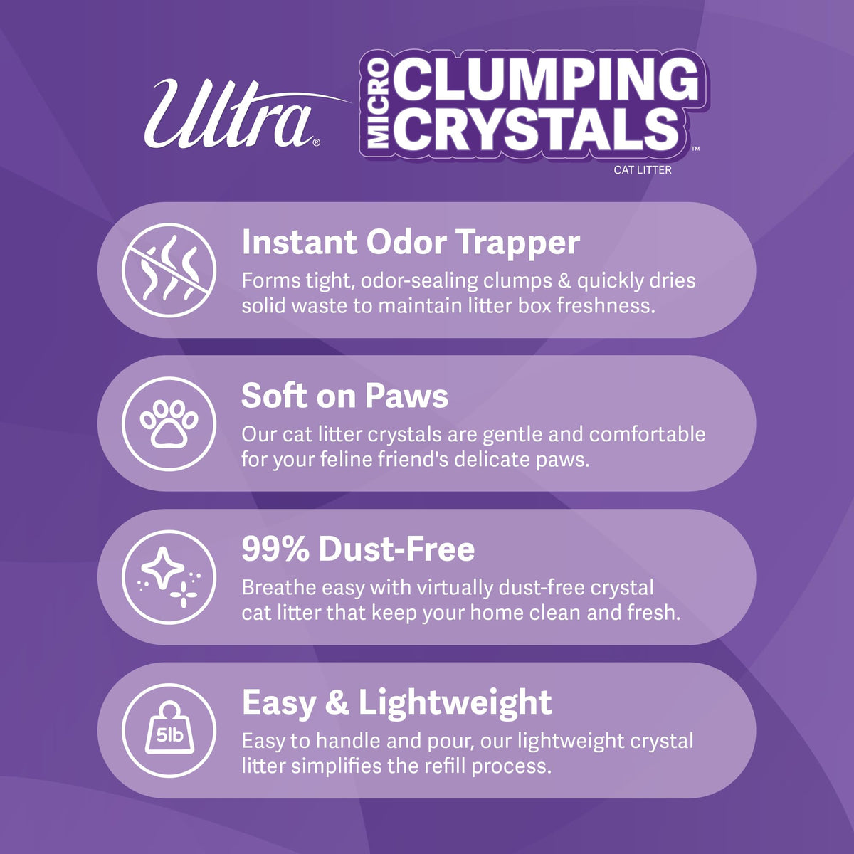 Ultra Clumping Micro Crystals Premium Cat Litter - Dust Free, Soft On Paws, Fragrance Free - 15 Lbs. Total (3Pk Of 5 Lbs.)