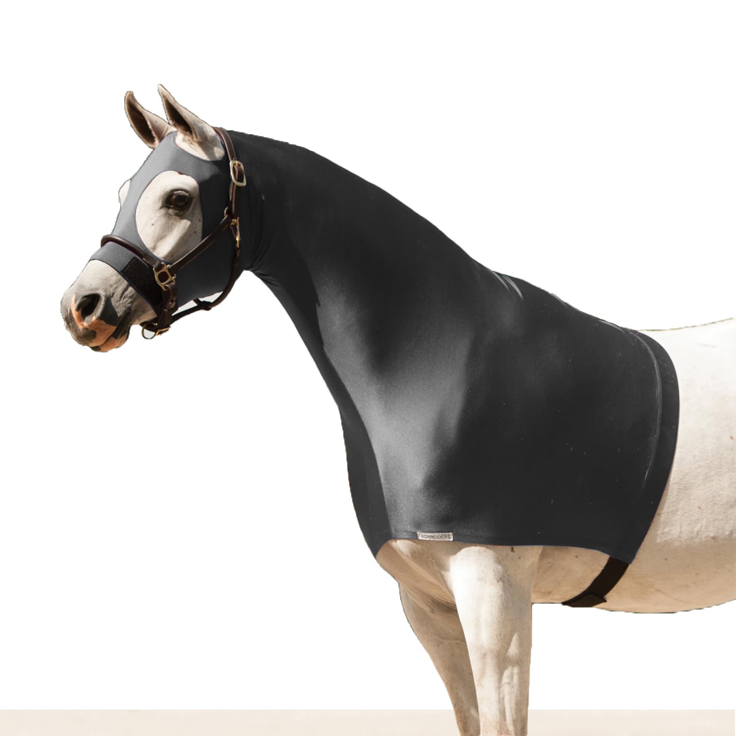 Introducing the UltraFlex Horse Slicker, your horses ultimate ally! These slickers, perfect for all horse needs, provide superior defense against grime, dust, and shavings, keeping manes, braids, and bands neat and tidy. Select the ideal UltraFlex Slicker for your horse, from a shoulder-guard to prevent blanket rubs, a sheet for shielding the shoulder, withers, and haunches, a hood for maintaining mane neatness, to a full-body sheet for comprehensive coverage. Crafted with premium fabrics, these slickers offer over 95% UV protection in various weights, ideal for different weather and temperatures. Our range includes the airy Mesh Slickers for summer and the sturdy Lycra Slickers for all-season use, ensuring your horses comfort. Available in both face and faceless designs, our slickers prevent discomfort around the ears, eyes, or seams, with options like a forelock saver for extra safety. The innovative front closures, including pull-on, full zipper, or 3/4 zip styles, come with robust YKK zippers and snag-free hook and loop fastenings. Our slickers unique tail cover design avoids tail rubs and allows free tail movement. Ideal for farms, barns, or equestrian events, UltraFlex Horse Slickers are the top choice for top-notch horse protection and comfort. Choose UltraFlex Horse Slinky Slickers for a pristine, cozy, and safeguarded horse.