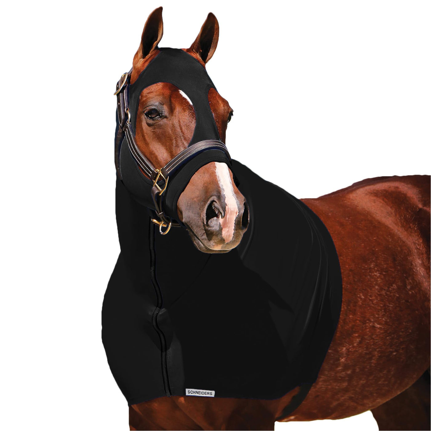 Description: Meet your horses new best friend, the UltraFlex Horse Slicker! Expertly designed to meet all equine needs, these slickers offer optimal protection against dirt, dust, and shavings, ensuring that manes, braids, and bands remain flat and pristine. Choose the UltraFlex Slicker that best suits your horses needs, whether it be a shoulder-guard to protect the shoulders from blanket rubs, a sheet to protect the shoulder, withers, and haunches, a hood to keep manes flat & clean, or our full-body sheet for nose to tail protection. Our slickers are meticulously crafted from high-quality fabrics, providing over 95% UV protection, and are available in multiple weights designed to match the level of protection needed for varying weather and temperature conditions. Whether you need our stretchy, breathable Mesh Slickers for the Summer months or our durable Lycra Slickers for year-round use, we have your horse covered. With face or faceless options, our slickers ensure no rubs to the ears, eyes, or seams, offering designs that cater to individual preferences and needs. The face options even include a forelock saver for added safety and protection. The innovative front closures, featuring pull on, full zipper, or 3/4 zip options, are designed with heavy YKK zippers and no-snag hook and loop closures to suit every need. The unique tail cover design on our sheets and full body slickers prevents tail rubs and ensures that horses can move their tails freely. Whether you are at the farm, barn, or equestrian event, UltraFlex Horse Slickers are the go-to choice for anyone looking to offer their horse premium protection and comfort. Choose UltraFlex Horse Slickers for a clean, comfortable, and protected equine companion!