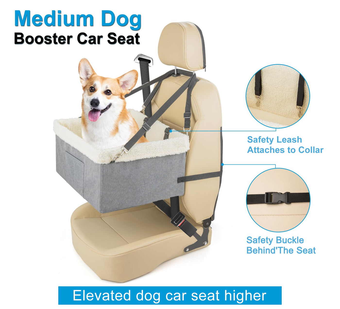 Unicitii Dog Car Seats For Small Dogs-Elevated Pet Dog Booster Seat For Dog,Raised Dog Lookout Car Seat W/Clip-On Safety Leash A
