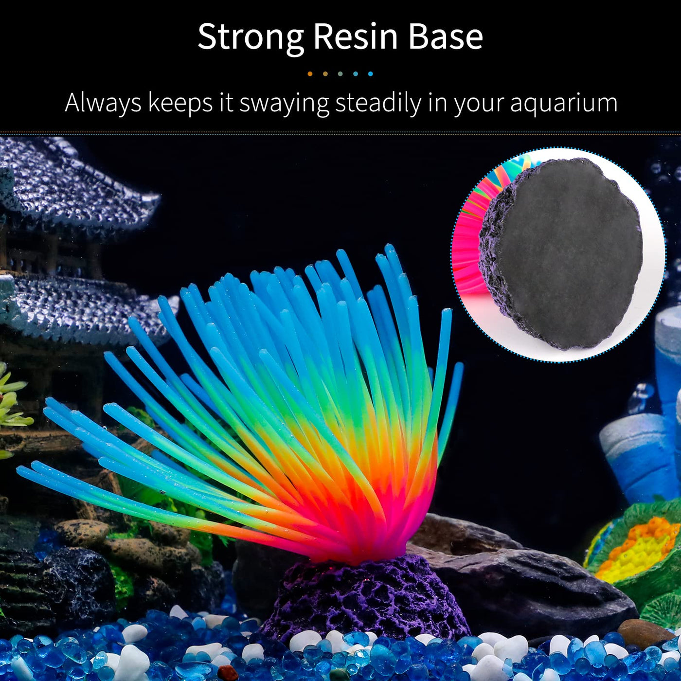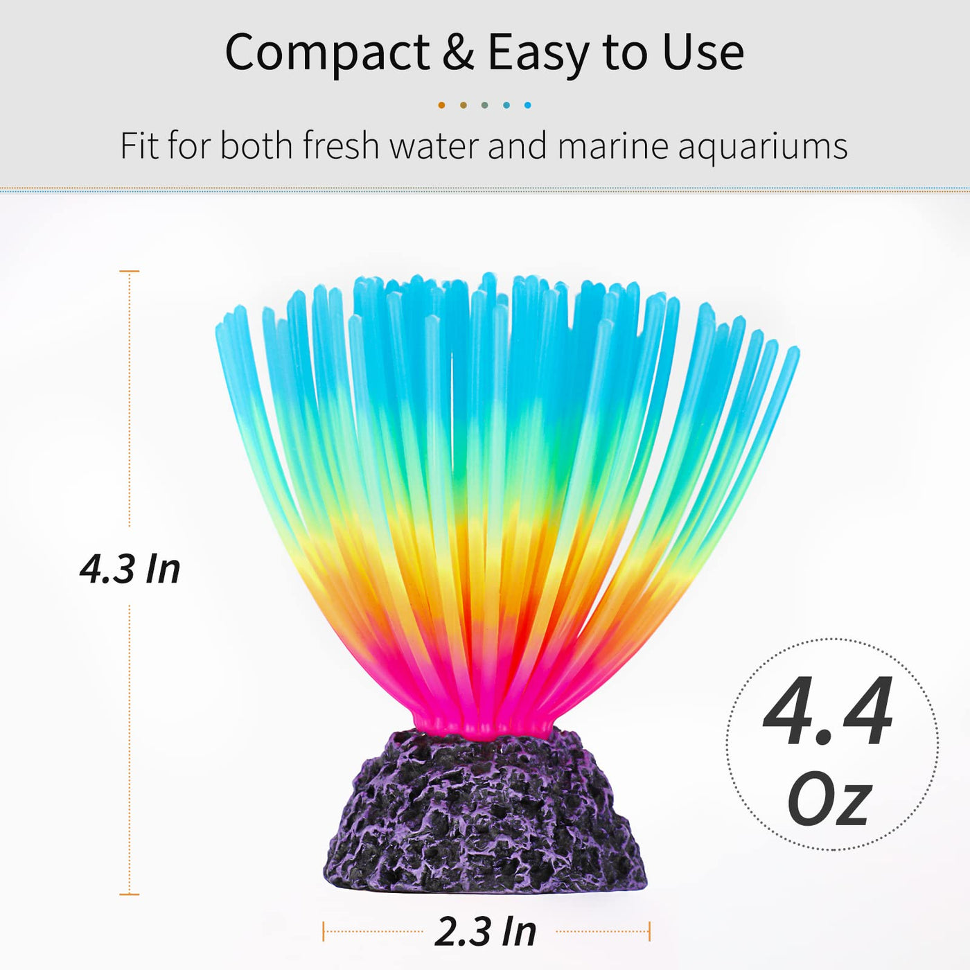 charming Aquarium Decor: Imitating the real sea urchins the appealing iridescent blue decoration turns your tedious fish tank into a lifelike ocean landscape glow Under Extra Lights: The vivid ornament cant be luminescent in the dark but glows under actinic lighting great for brightening and invigorating your plain aquarium Stable in Water: Designed with a strong resin base weighing 44 oz it always stands stably in the tank when the iridescent blue needles swing with the movement of water Reliable Material: ItAs made of soft silicone material which causes no threat to your fish and is dependable to keep them lively anytime Easy to Use: Measure 23 D x 43 H Just put it into your fish tank and it will always remain realistic looking Fit for both fresh water and marine aquariums