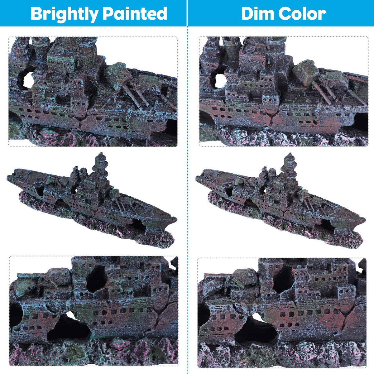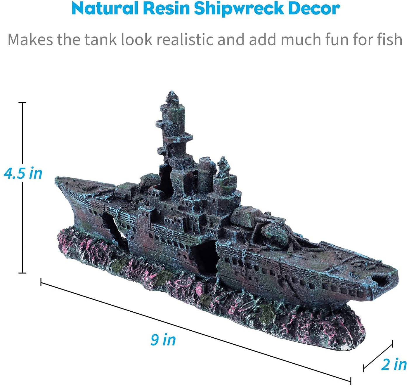 The natural and detailed resin shipwreck ornament is great for tiny beta tetras and guppies. Makes the tank look realistic and add much fun for the fish.