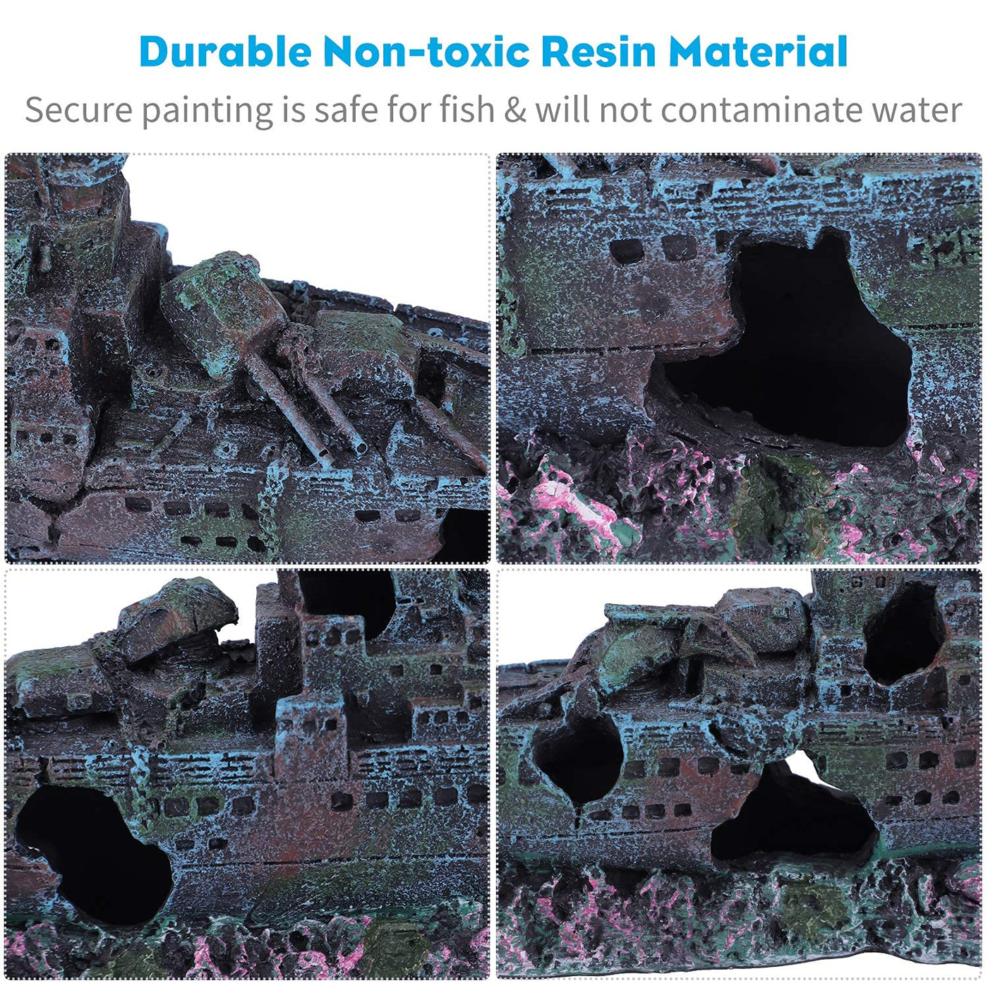 Uniclife Aquarium Shipwreck Decoration Resin Sunken Ship Decor Ornament For Small Betta Fish Tank