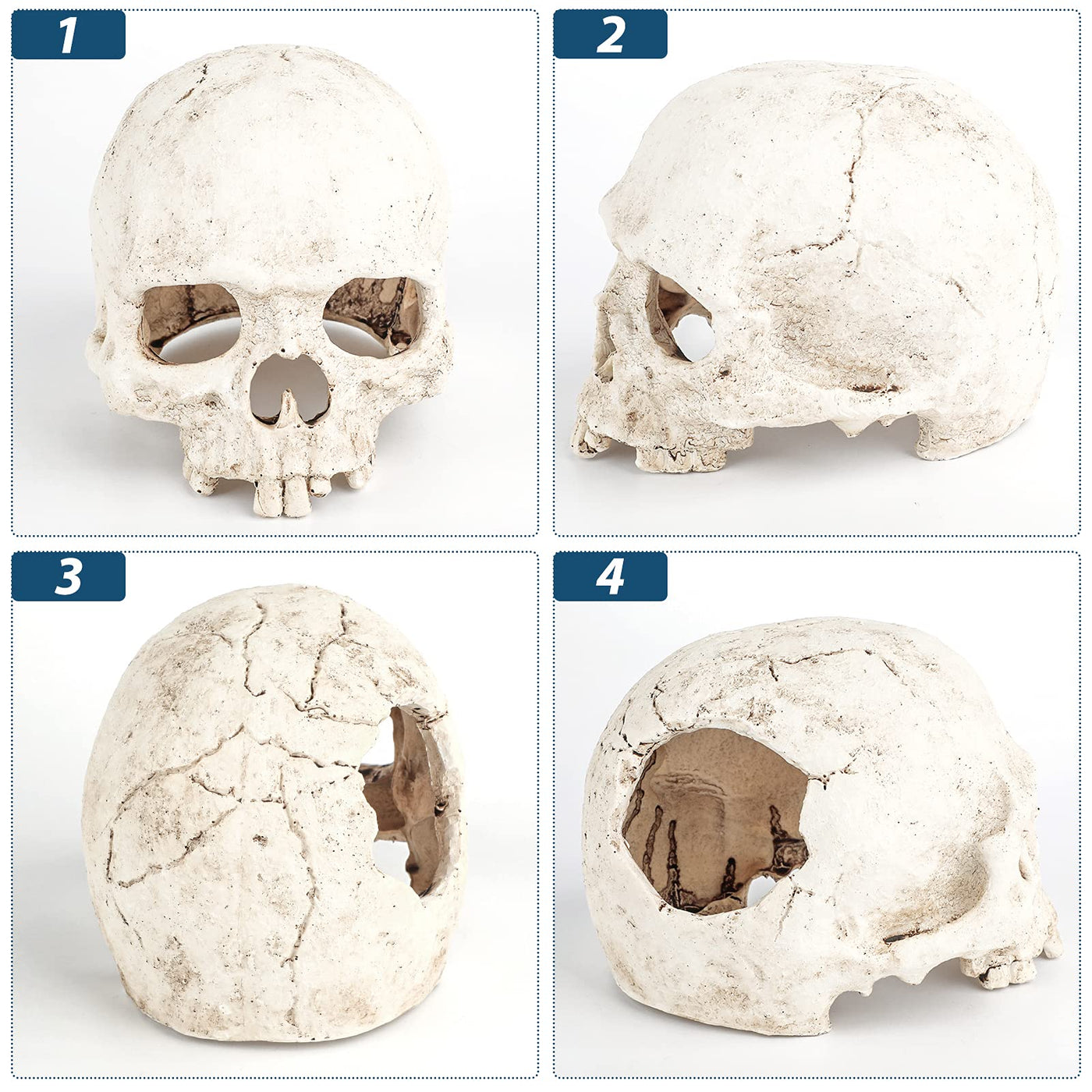 Solid construction: Enough weight of 73 oz makes it sit steadily in your tank Be sure to smoothen some of its edges with sandpaper and soak it for at least 24 hours in the sink gorgeous Detailing: With natural painting and lightly textured surface this realistic skull decor adds a little piece of art to your tank A nice and unique focal point for your fish Well-sized craft: Measure 55 L x 43 W x 42 H Fabulous size for 5 - 20 gallon fish tanks or large fish bowls great for shrimp small fish or reptiles to swim or crawl through Ideal Hiding Spot: With eye and nose holes for fish to enjoy itAs great to see fish or shrimp just drifting in and out of an empty eye or nose socket Reliable & Secure: Made of durable resin material with natural color which is vivid and not washed out easily Perfect for aquarium decoration or model making