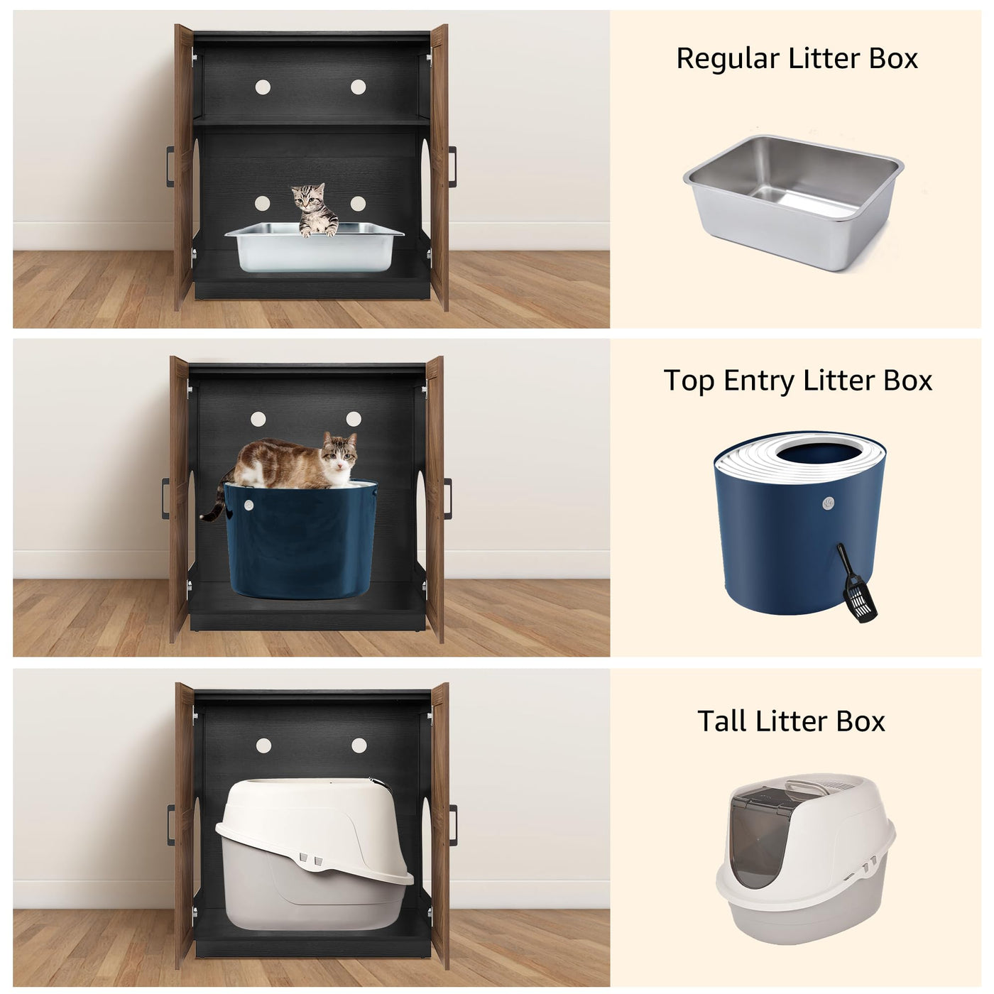 unipaws Cat Litter Box Enclosure with Shelves, Tall Hidden Litter Box Cover for Tall or Top Entry Litter Box, Kitty Enclosed Lit