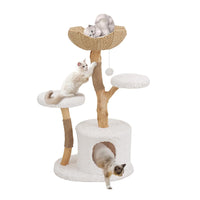 Unipaws Modern Cat Tree Tower For Small And Large Cats, Real Solid Wood Branch Luxury Cat Condo With Scratching Post And Cat Bed