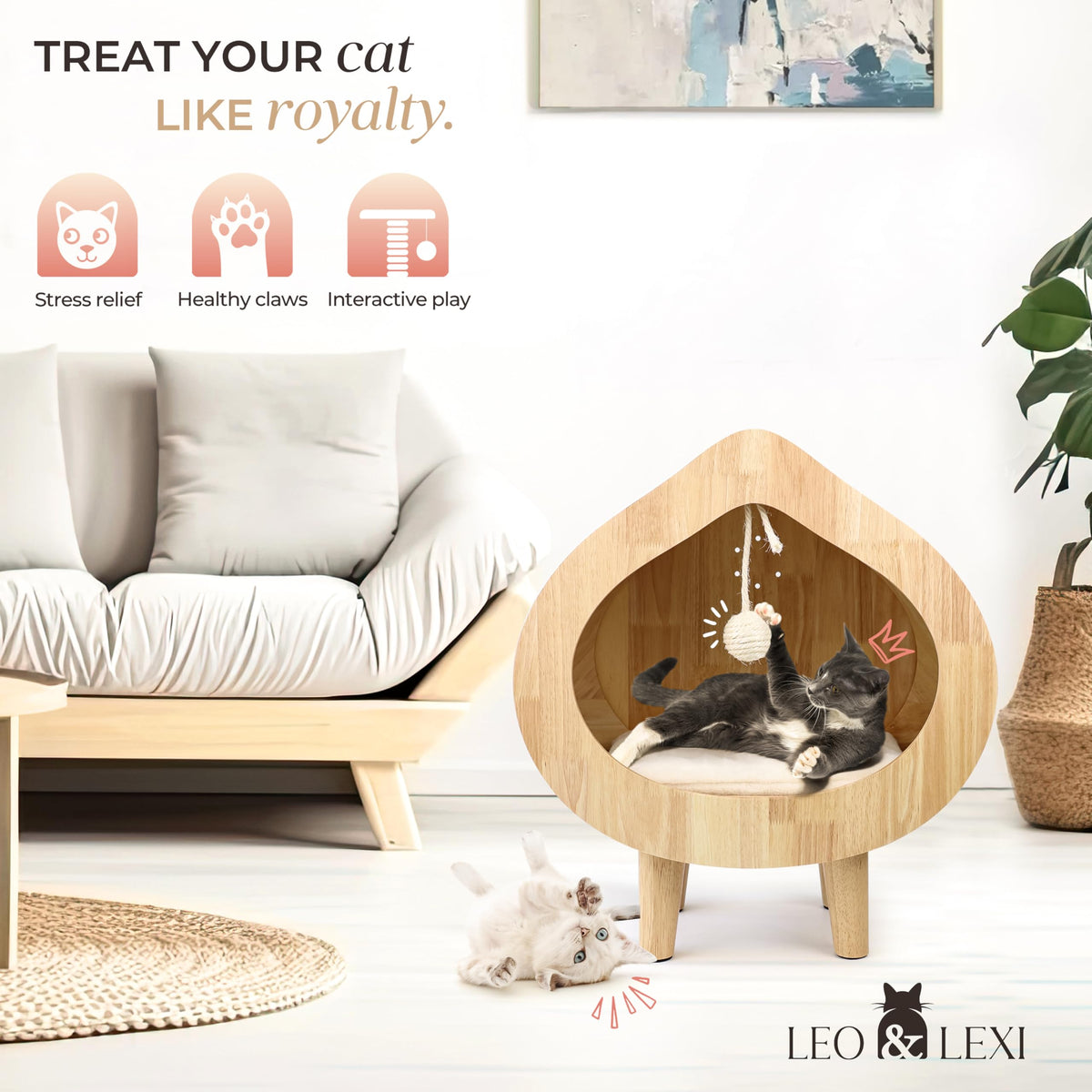 Indulge Your Feline Friend With The Ultimate Luxury Of The Leo & Lexi Wooden Cat House. A Perfect Blend Of Style And Comfort, This Modern Cat Scratcher House Is Designed With An Aesthetic Appeal That Enhances Your Cat Room And Your Home Decor. The Plush Soft Washable Cushion Provides A Calming, Cozy And Comfy Bed For Your Pet To Rest And Relax. Ideal For Small And Medium Cats. The Soft Texture Of The Plush Cat Bed Makes It A Perfect Kitty Bed For Indoor Cats. But This Is More Than Just A Cat Bed. It Can Be Cat Climber, Cat Playground, Cat Hideout Or A Cat Scratcher. This Luxurious Cat House Comes With A Built-In Cat Scratcher, Eliminating The Need For A Separate Cat Scratching Post. The Scratching Pad Is Conveniently Wrapped Around The House, Providing Your Cat With A Perfect Spot To Exercise Their Claws. To Add To The Fun, A Hanging Ball Is Included For Your Cat To Play With. This Feature Not Only Entertains Your Cat But Also Helps To Reduce Anxiety. Also, Your Cat Will Enjoy Sleeping, Climbing And Hiding In This Cat Cubby. With Its Unique Design And Premium Quality, This Cat House From Leo & Lexi Is Indeed A Luxurious Kitty Condo That Your Pet Will Love.