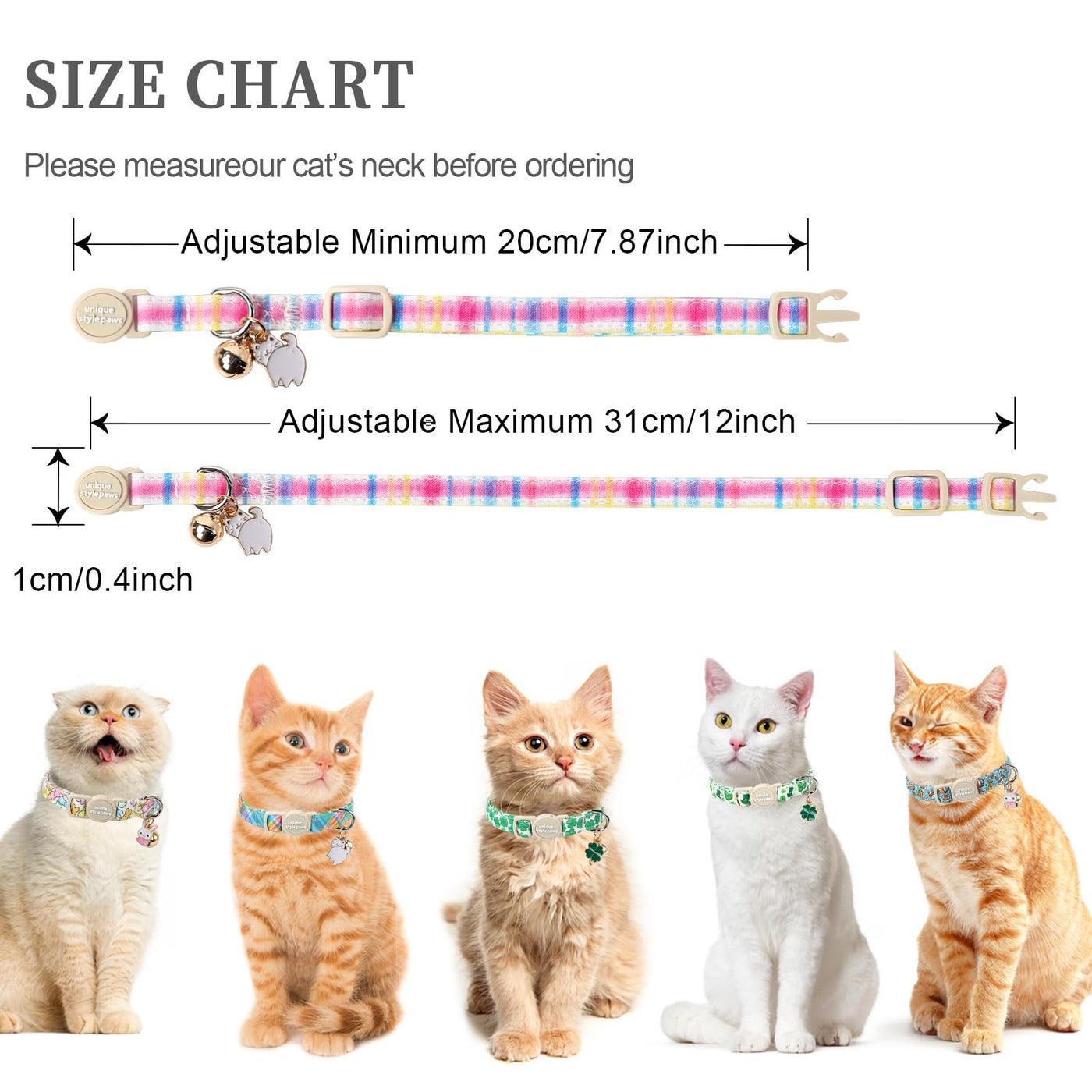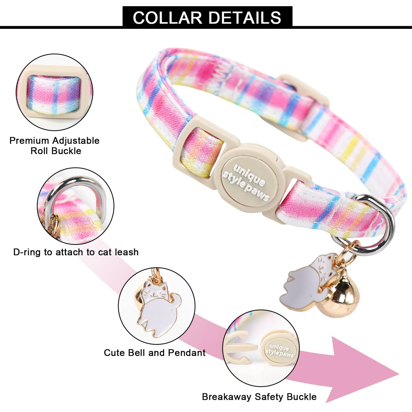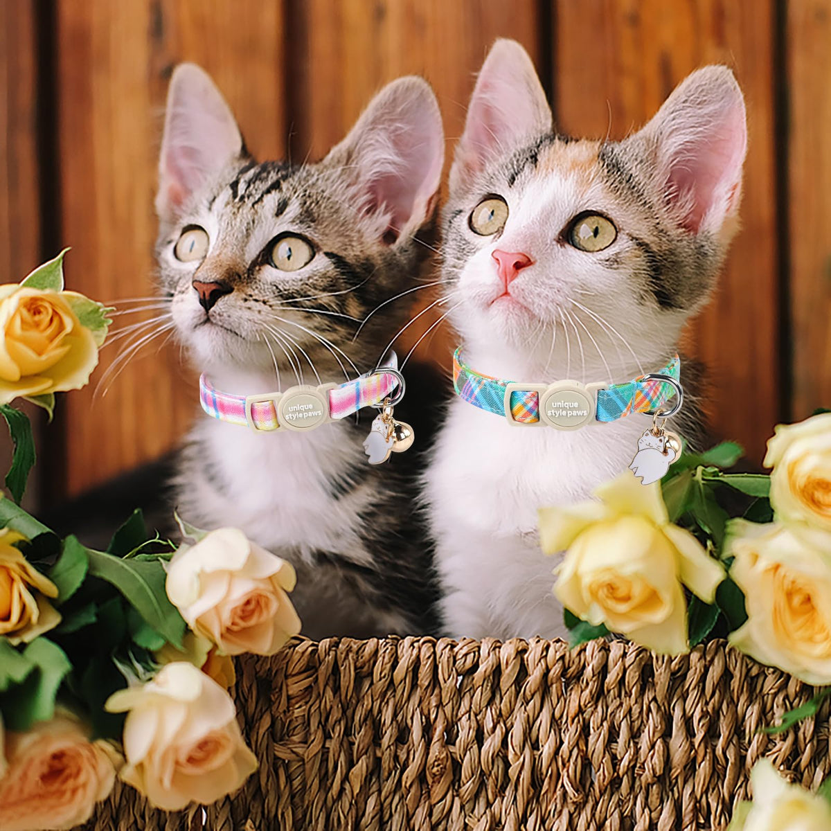 Unique Style Paws 2 Pack Easter Day Kitten Collar Breakaway With Bell&Pendant, Adjustable Safety Blue Pink Colorful Plaid Cat Co