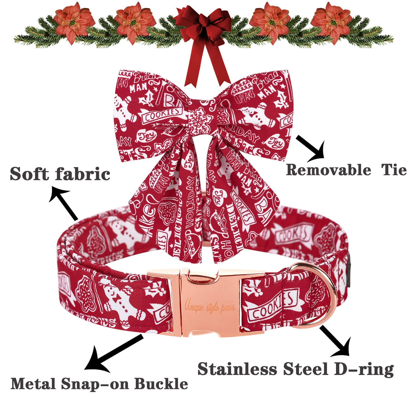 Unique Style Paws Christmas Dog Collar With Bow Tie Gingerbread & Snowman Winter Puppy Collar For Small Medium Large Dogs-Xl