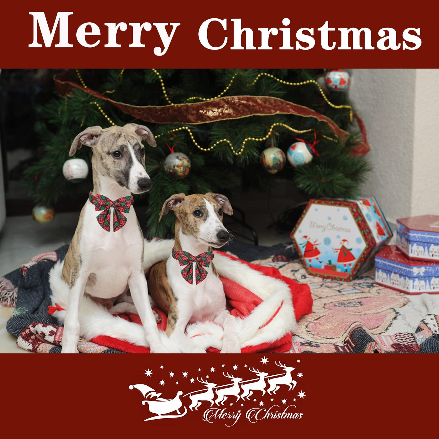 Unique Style Paws Christmas Dog Collar With Tie Red Green Plaid Adjustable Cotton Puppy Collar For Small Medium Large Dogs-S