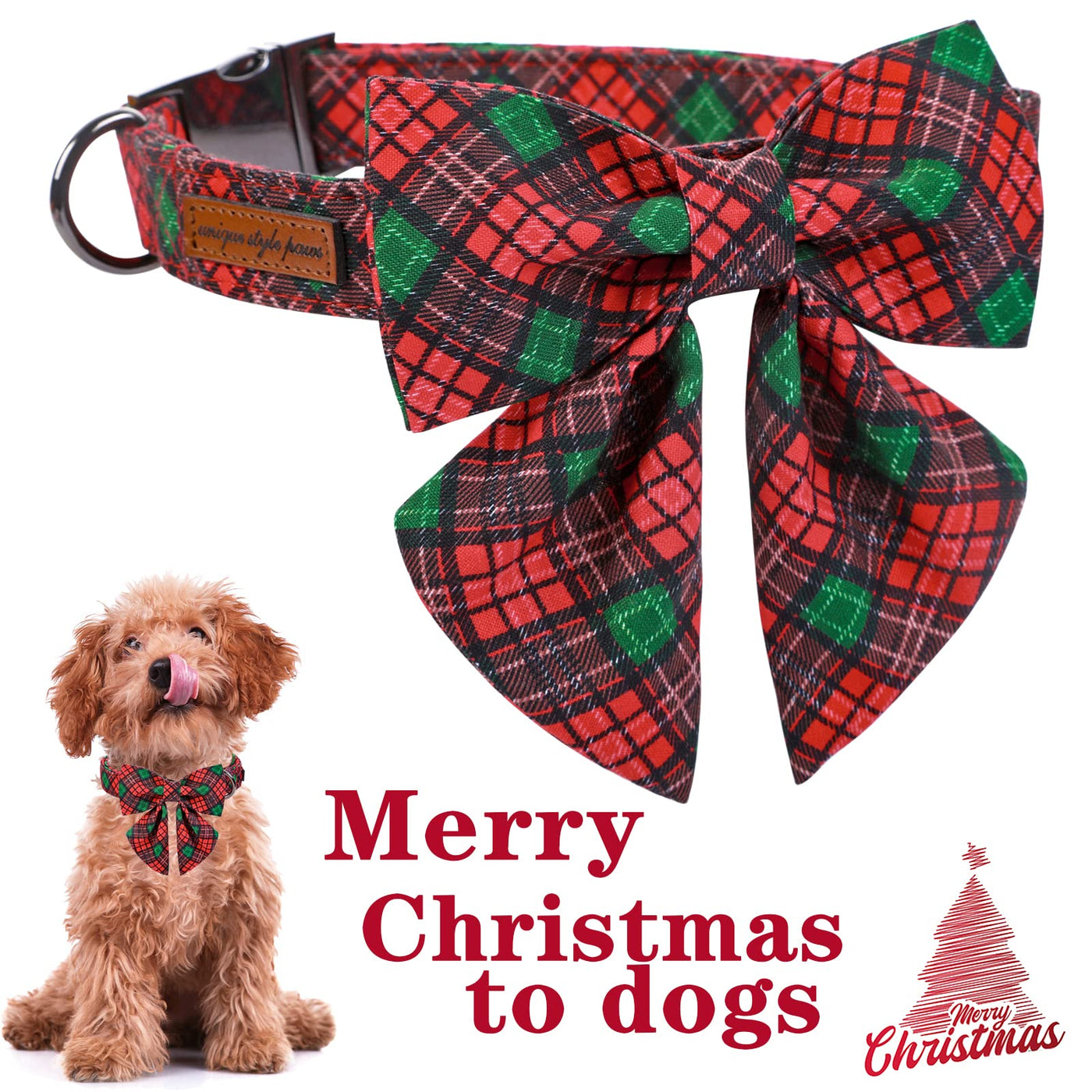 Q: Is the bow tie removable on the Christmas dog collar?A: Yes, the bow tie on the Unique Style Paws Christmas Dog Collar is detachable. It has two elastic bands that allow you to pass it through the collar or attach it to any other collar, giving you the option to customize your dog's look.