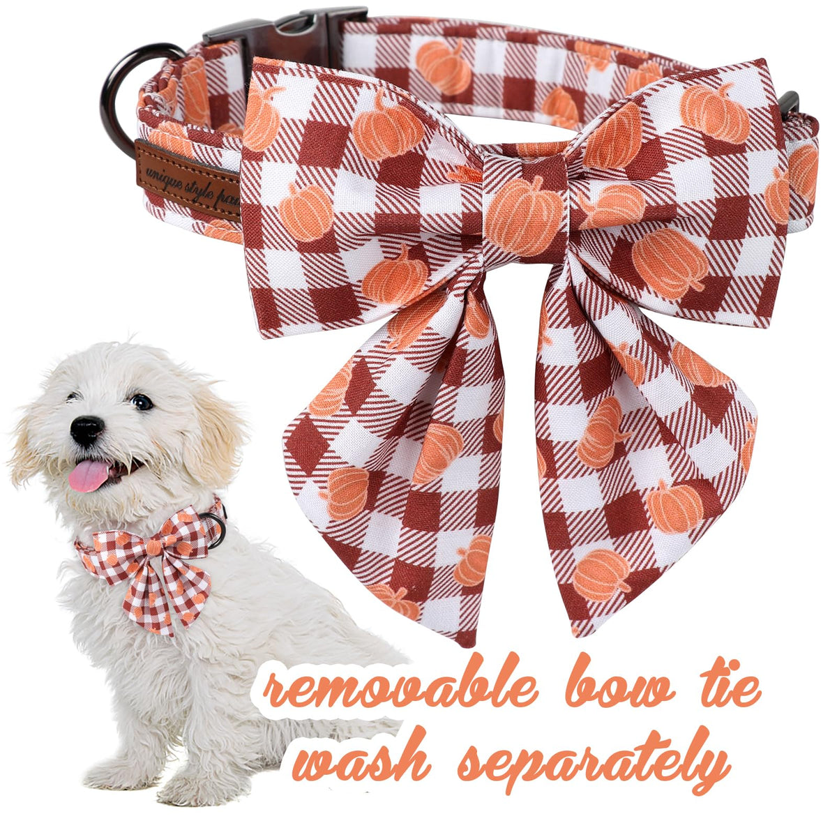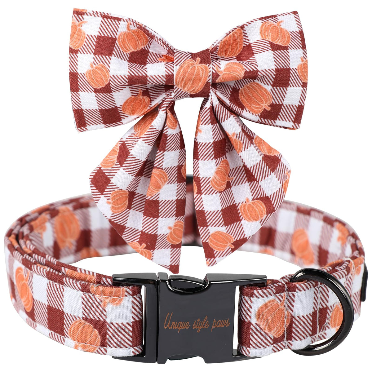 Unique Style Paws Cotton Dog Collar With Bow Halloween Pumpkin Plaid Dog Collar With Bow Tie For Small Medium Large Dogs Pets Gi