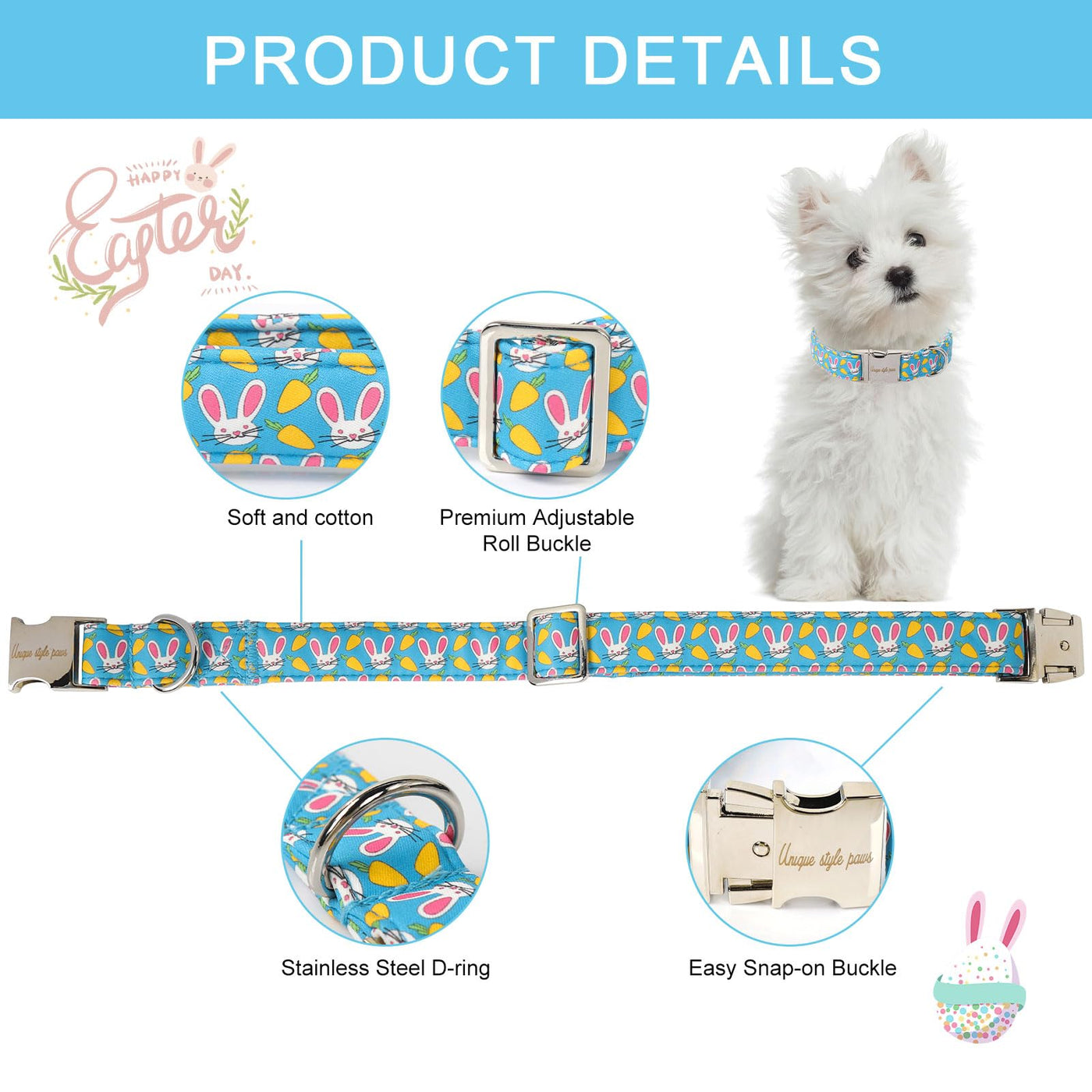 Unique Style Paws Dog Collar Metal Buckle Collar For Easter Gift Pink Ear Rabbit Carrot Durable Cotton Collar For Small Medium L