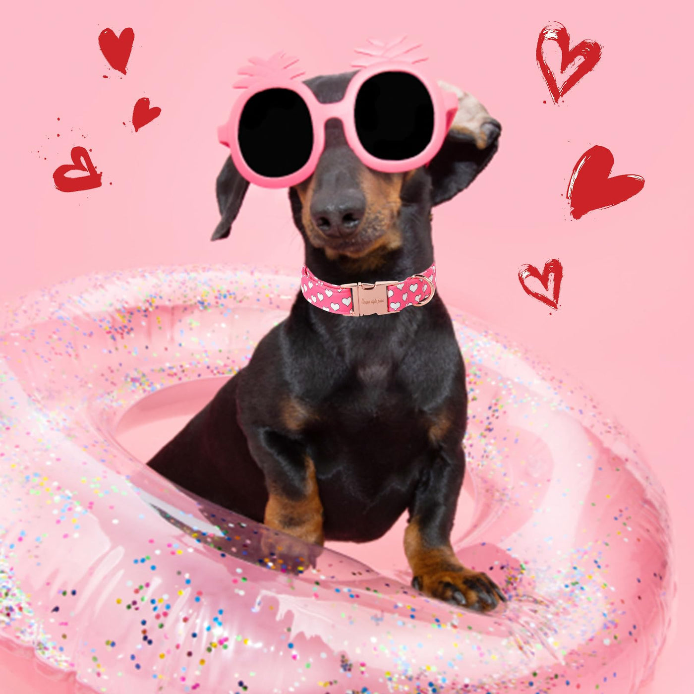 Unique Style Paws Dog Collar Metal Buckle Collar For Valentine'S Day Gift Pink Heart Love For Small Medium Large Boys Girls Dogs