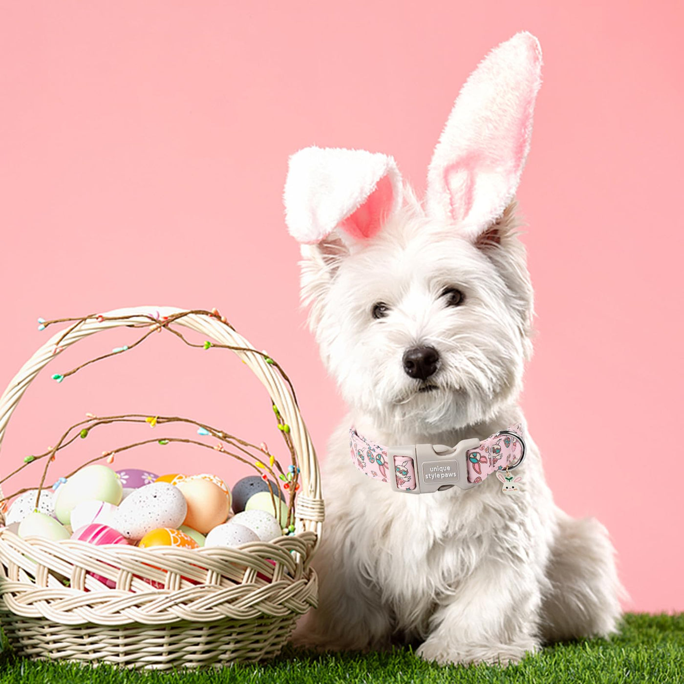 Unique Style Paws Easter Day Cotton Bunny Egg Rabbit Dog Collar - Adjustable For Medium, Small Dogs