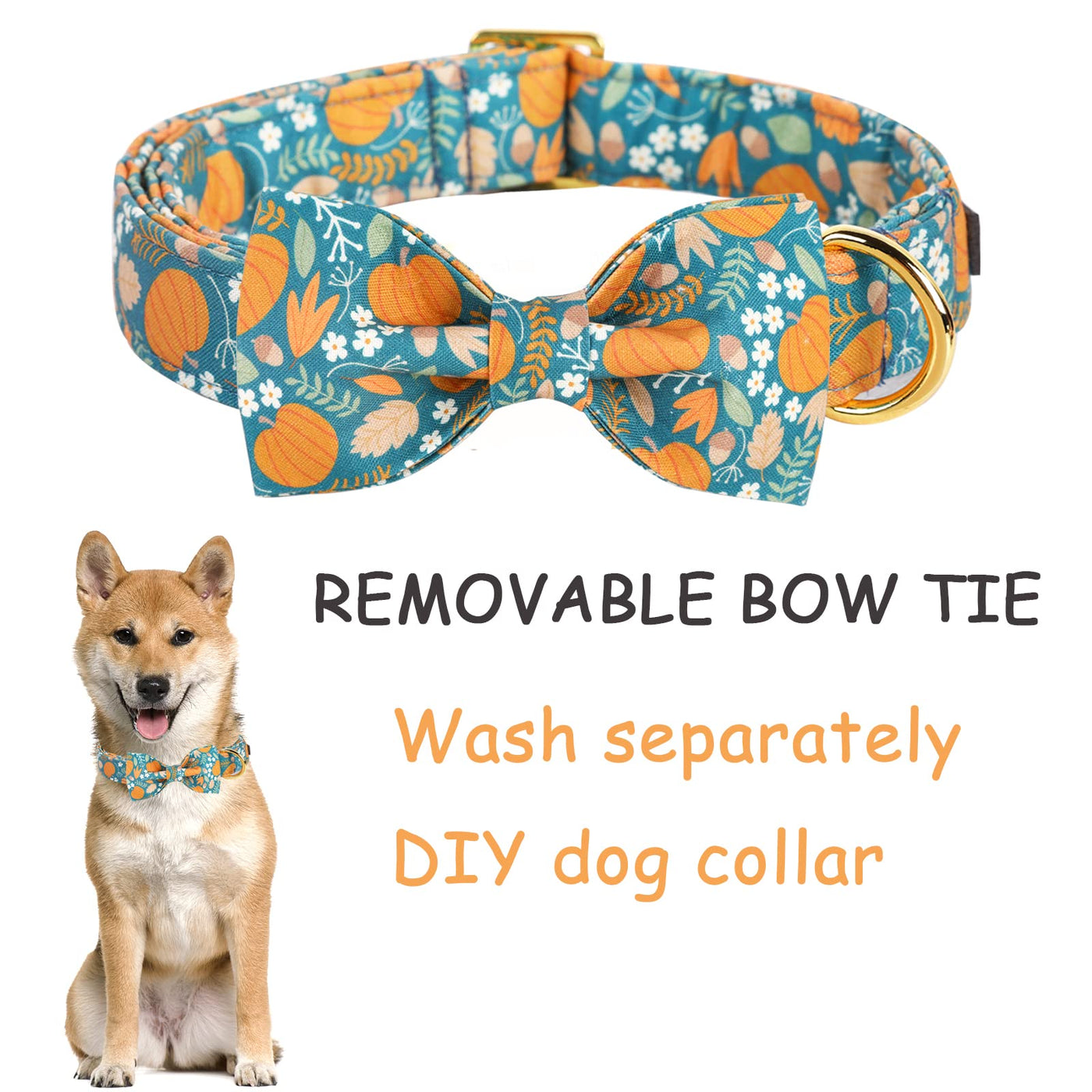?Removable Bow Tie? : The bow tie or flower tie of the summer dog collar is detachable. The tie has two elastic band pass the tie through the dog collar or tie it to any other collar. You can DIY your dog collar.