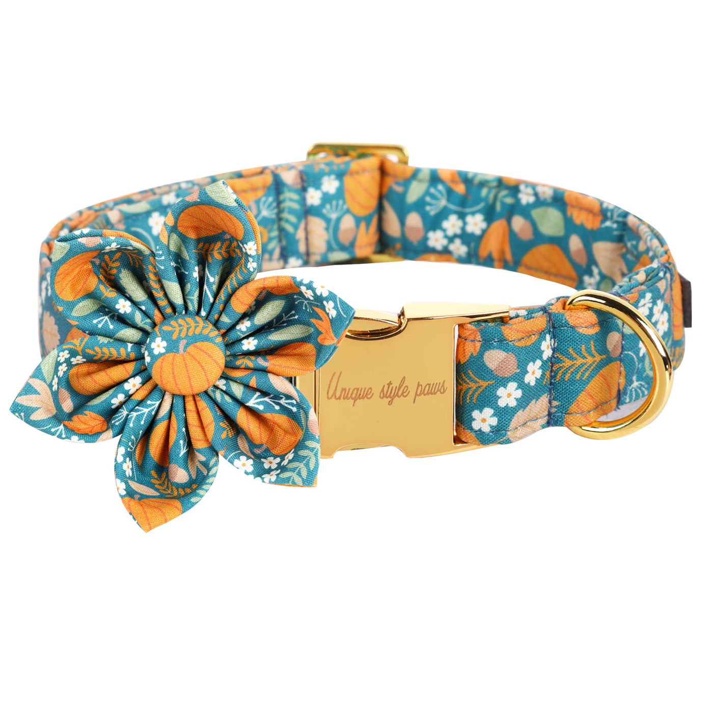 Unique Style Paws Halloween Dog Collar With Flower Tie Pumpkin Cotton Collar Adjustable Puppy Collar For Small Medium Large Dogs-S