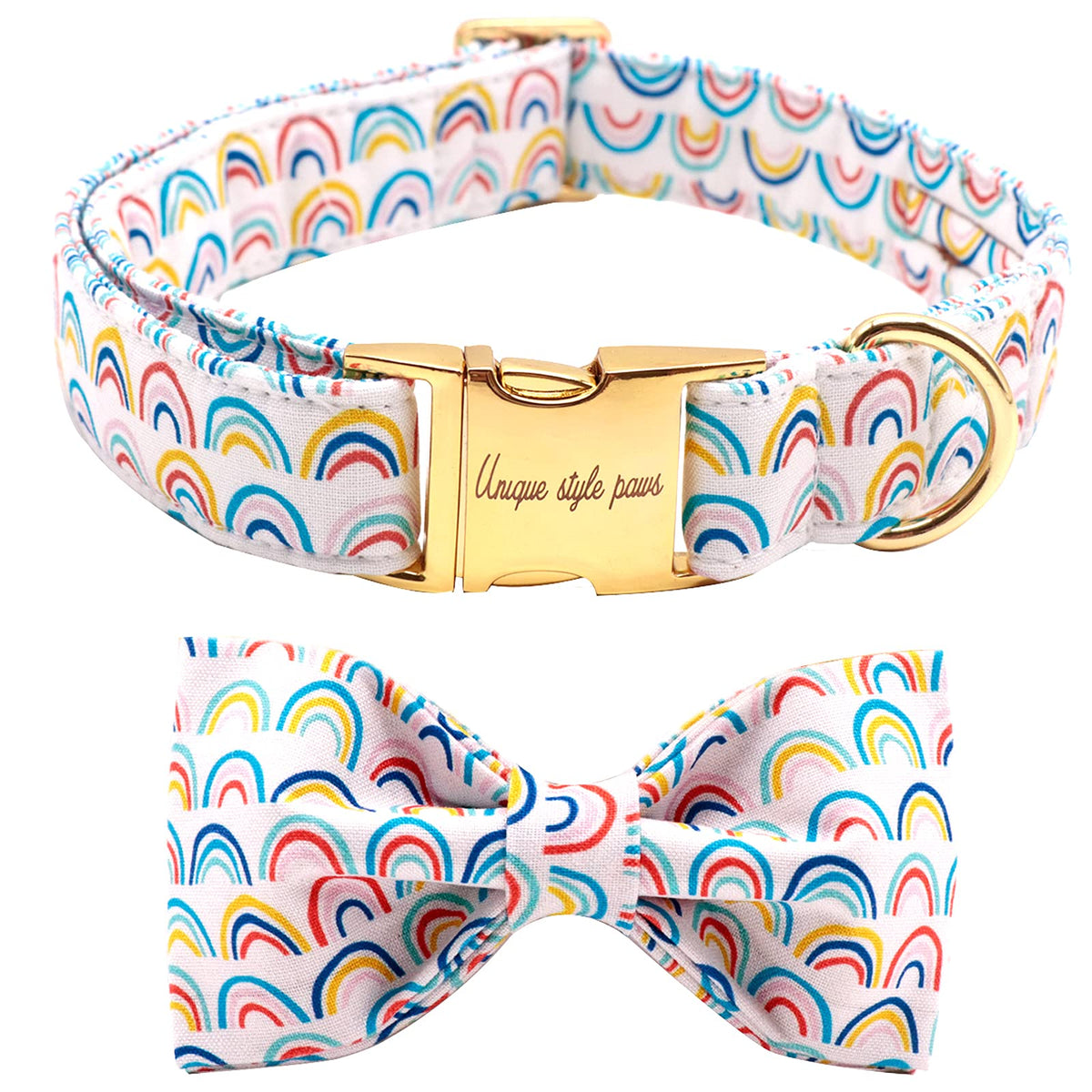 Unique Style Paws Rainbow Colorful Dog Collar With Bow Pet Gift Adjustable Soft And Comfy Bowtie Collars For Small Medium Large