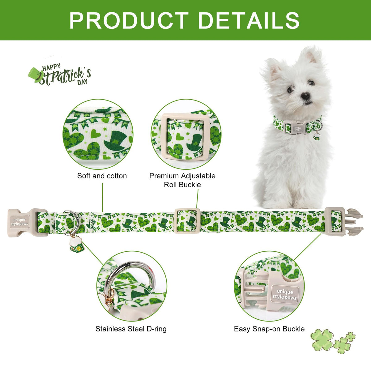 Unique Style Paws St. Patrick'S Day Dog Collar Plastic Buckle Collar With Pendant Green Lucky Magic Hat Gift For Small Medium La