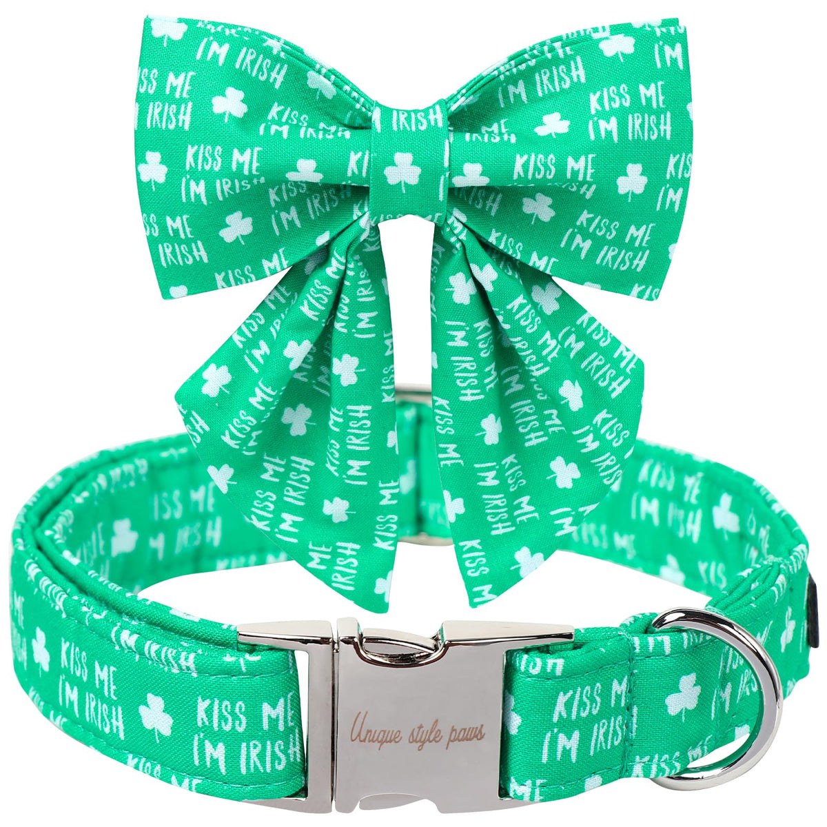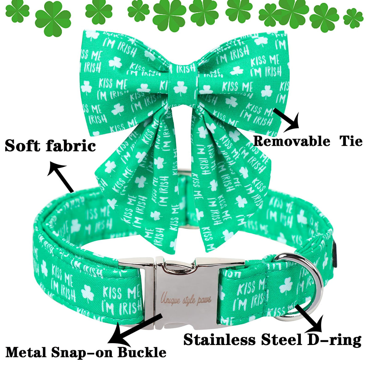Unique Style Paws St. Patrick's Day Dog Collar with Bow Green Clover Dog Collar Bowtie Holiday Gift Bowtie Collar for Large Medium Small Dogs