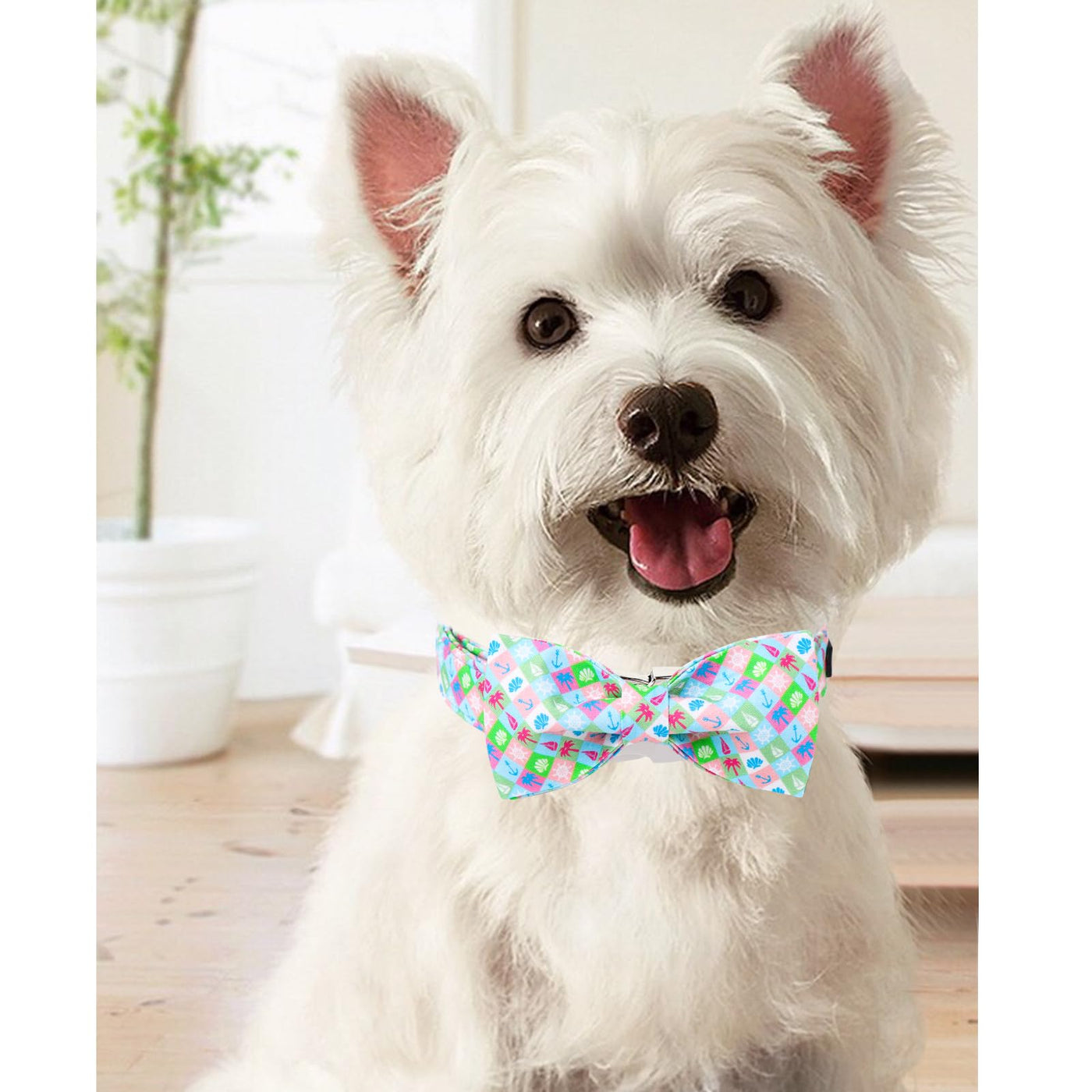 Unique Style Paws Summer Dog Collar With Bow, Cute Soft Bow Tie Dog Collar,Blue Dog Bow For Girl,Boy Dogs,Cats,L,16-24In