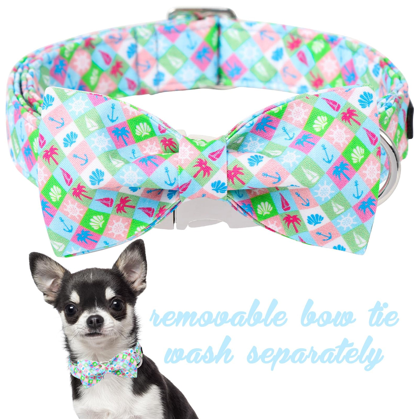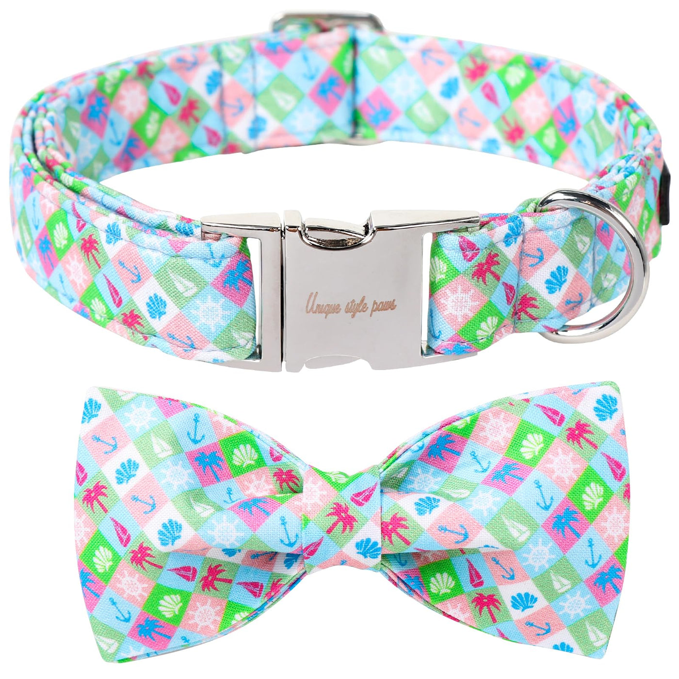 Features: ?1. Cute Little Flower Pattern, Full Of Summer Atmosphere. ?2. Pure Cotton Material, Soft And Easy To Fold, And Not Stuffy. ?3. Suitable For Puppy Birthday Party, Wedding And Other Festivals. Specifications: ?Material: Cotton ?Color: Colorful ?Size: Bowtie-S=2''(5Cm) X 4''(10Cm), Summer Dog Collar Summer Dog Collar S=0.78''(2Cm) X 10''(25Cm)~16''(40Cm) ?Unique Style Paws Is A Brand That People Love, With Different Colors And Durable Buckles. Collar Is Made With Multiple Layers Of Designer Cotton Fabric. We Use All Of Our Products On Our Own Pet Family Members And We Do Stand By The Quality Of Our Collars.
