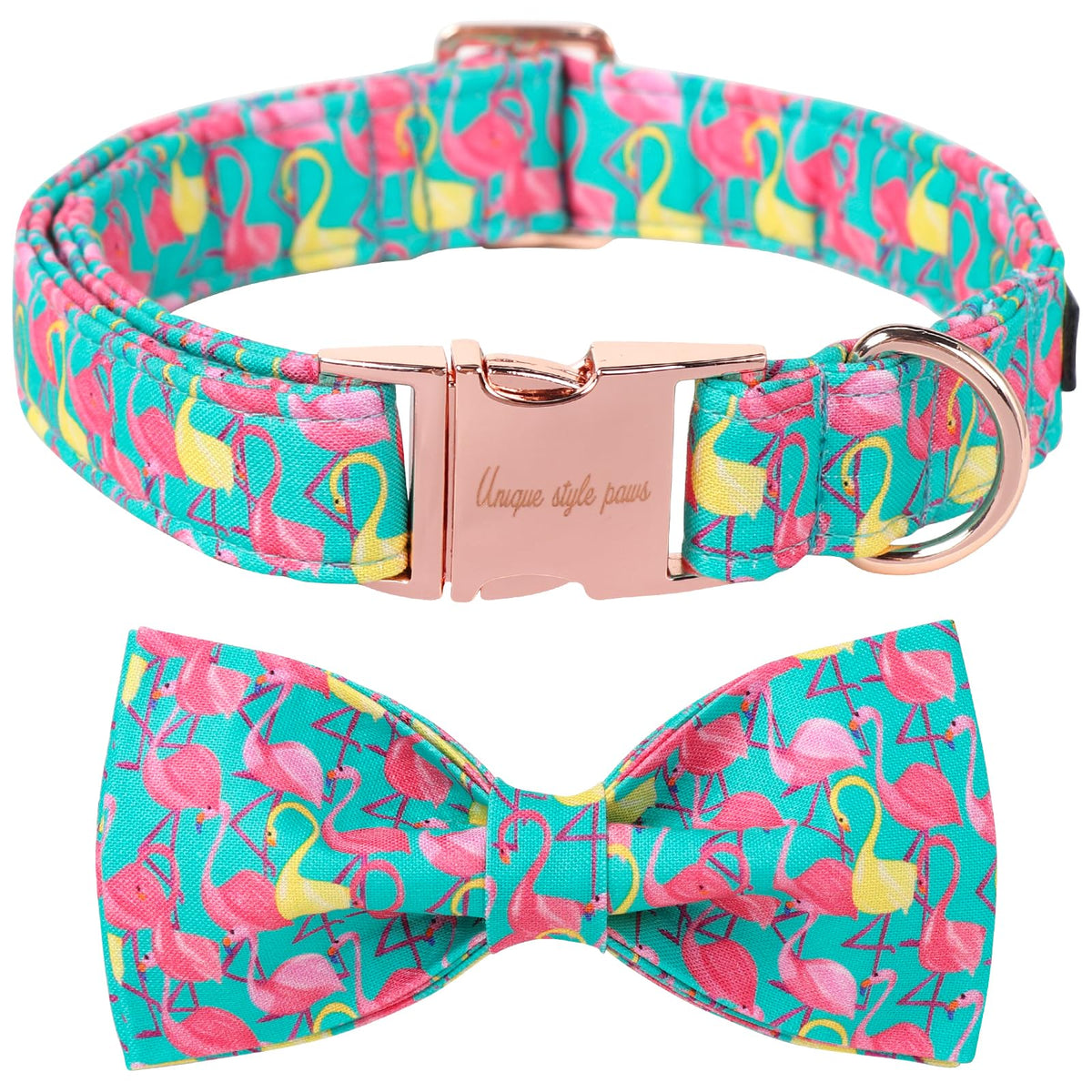 Unique Style Paws Summer Dog Collar With Bow, Flamingo Bow Tie Dog Collar,Cute Puppy Collar Green Dog Bow For Girl,Boy Dogs,S,10