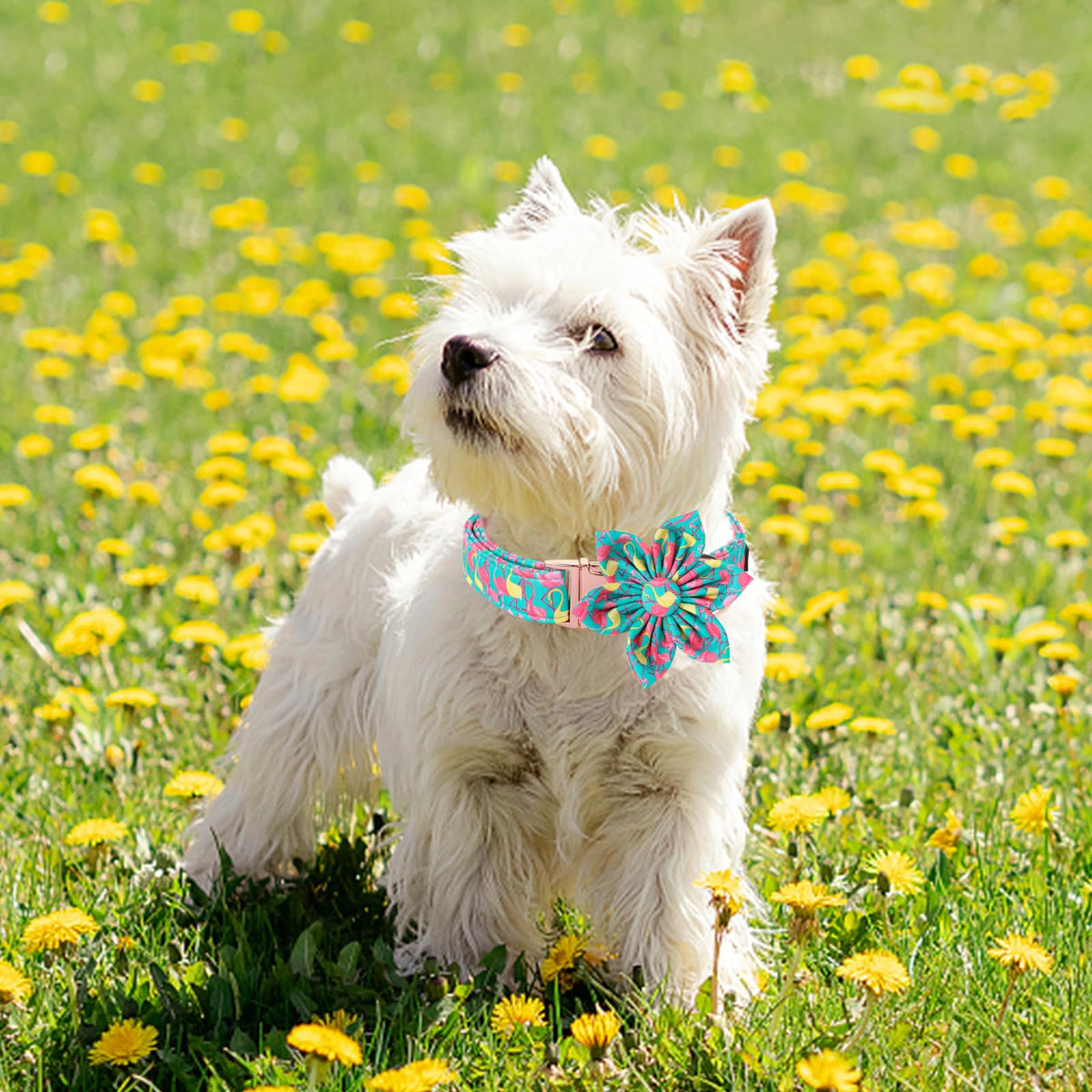 Unique Style Paws Summer Dog Collar With Floral Bow,Flamingo Bow Tie Puppy Collar, Cute Green Dog Bow Collar For Small,Medium,La
