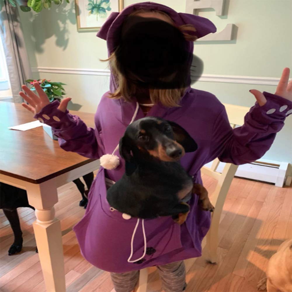 Unisex Big Pouch Hoodie Long Sleeve Pet Dog Holder Carrier Sweatshirt (Violet, Xl)