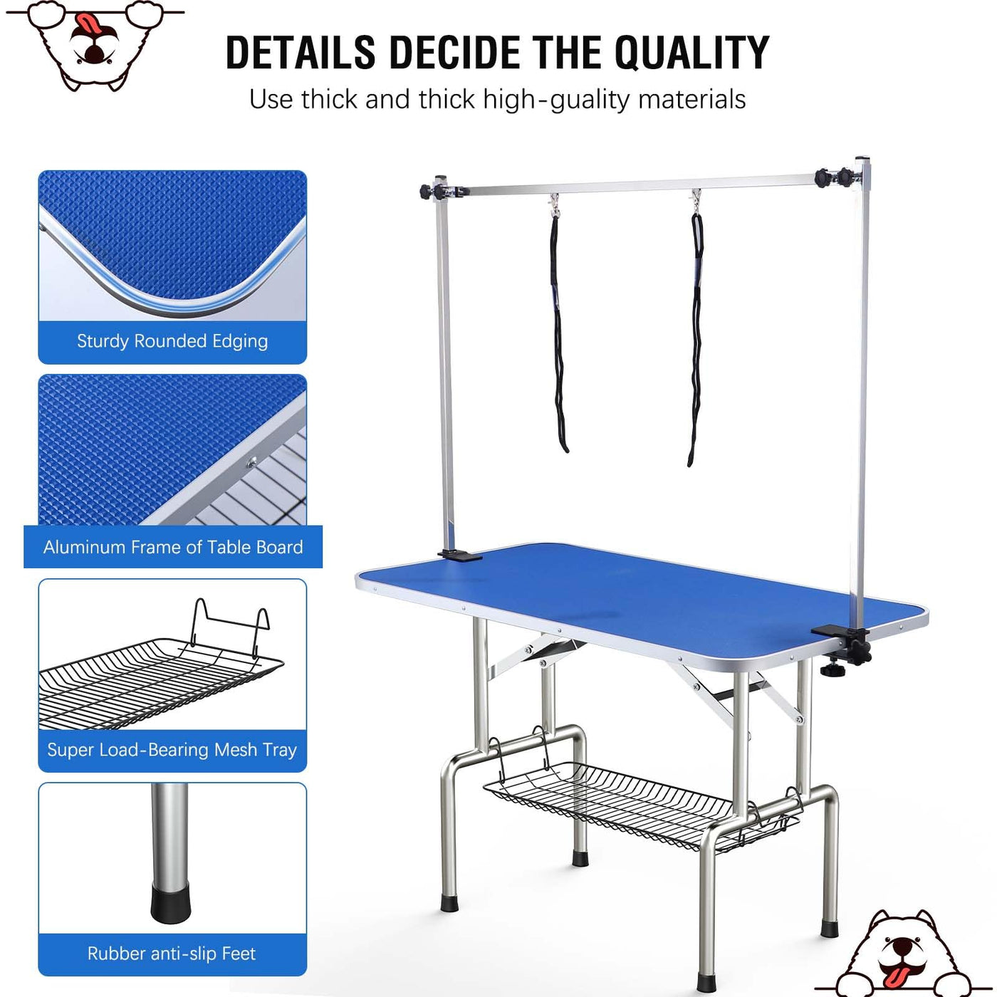 Unovivy 42-Inch Dog/Pet Grooming Table Foldable Height Adjustable, Portable Dog Grooming Table With Arm Noose & Mesh Tray, Maxim
