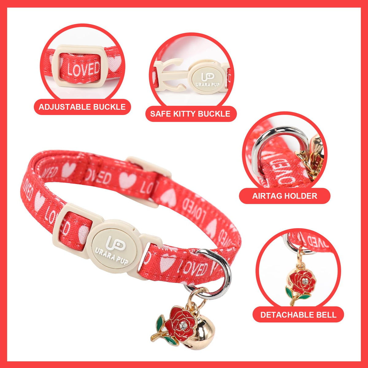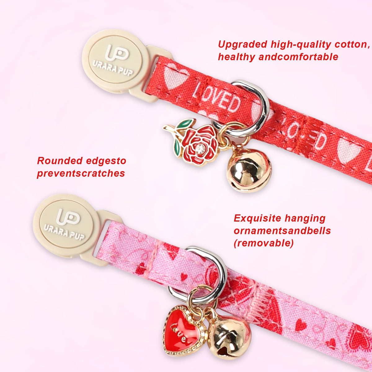 Up Urara Pup Cat Collar, 2 Pack Cat Collars Cute Breakaway Kitty Collar With Bell, Valentine'S Day Kitten Collars Pink Hearts Wi