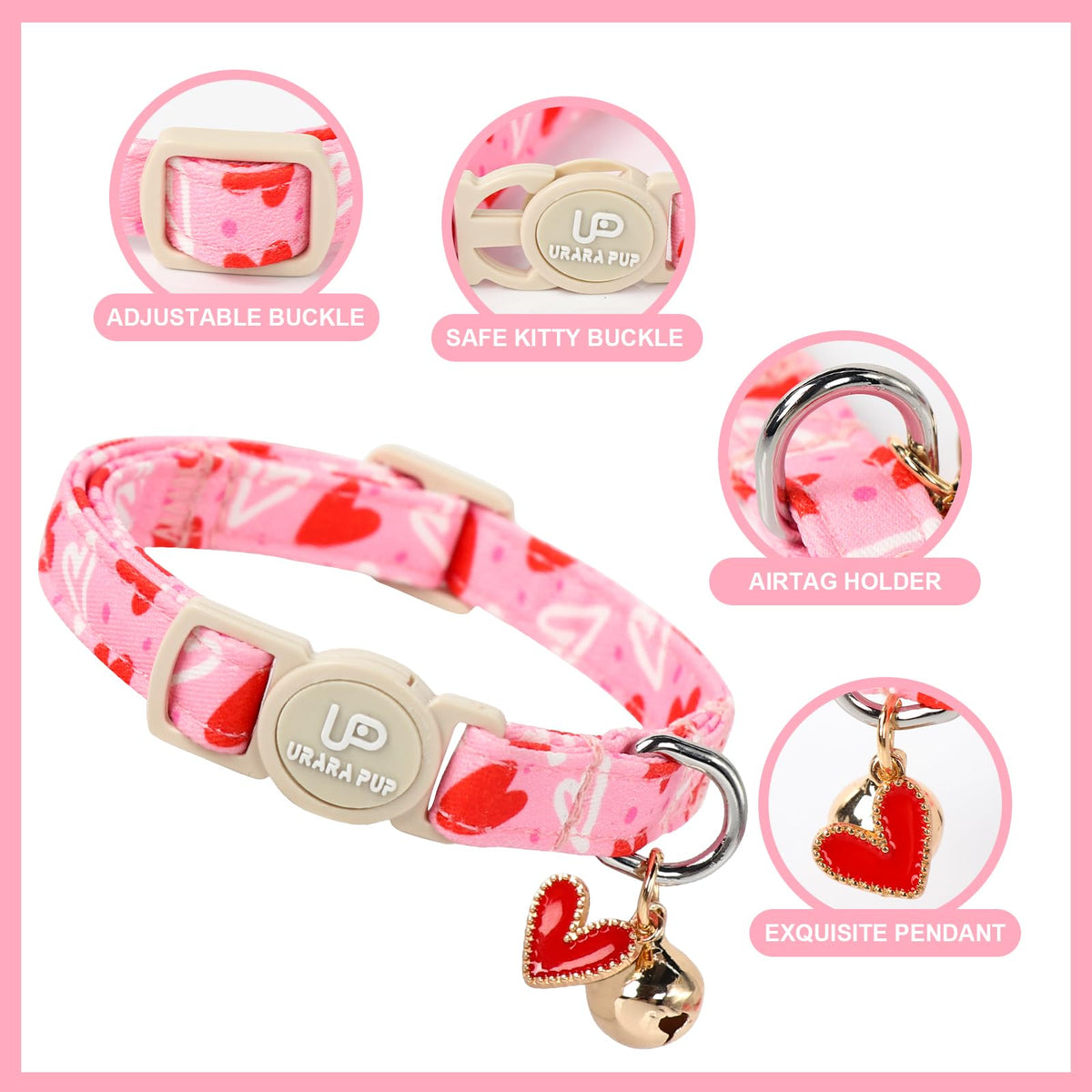 Up Urara Pup Cotton Breakaway Cat Collar?Valentine'S Day Cat Collar?Valentine Cat Collar With Sweet Hearts. Pink Heart Collar Is Suitable For Your Kitty. A Typical Valentine Gift Representative That Spreads Holiday Atmosphere.The Up Urara Pup Store'S Latest Offering Is A Cat Collar That Fits Perfectly With Valentine. The Heart Cat Collar Also Known As The Valentine Cat Collar. Valentine Cat Collar Is A Classic Element Of Holiday And Helps Your Puppy Attend Festival In A More Fashionable Way.?Wildlife Safety Bell?The Collar Has A Wildlife Safety Bell To Alert Birds And Small Animals That The Cat Is Coming. On The Other Hand You Can Use The Bell To Find Your Cat. The Bell Can Be Removed Or Replaced.?Safety Breakaway Buckle?Sturdy Removable Safety Release Buckle Can Be Unlocked Under Certain Strength, If Your Pet Is Stuck, It Can Be Free To Break Free, Avoiding Your Pet From Being Strangled By The Collar And Ensuring Your Pet'S Safety.?Pink Heart Design?&Nbsp;We Combined All The Typical Elements Of Holiday And Chose The Most Suitable Element For The Collar From Them. The Cat Collar Is The Most Representative Element On Holiday. It Is The Best Holiday Gift For Your Cat/Friend Who Has A Cat.?Applicable Occasions?&Nbsp;Pet Collars Make Your Cat More Beautiful, Cute And Stylish. Classic Valentine Collar Very Suitable Small Medium Large Cats To Wear For Various Parties,Wedding, Holiday, Family Picnics And Other Occasions.
