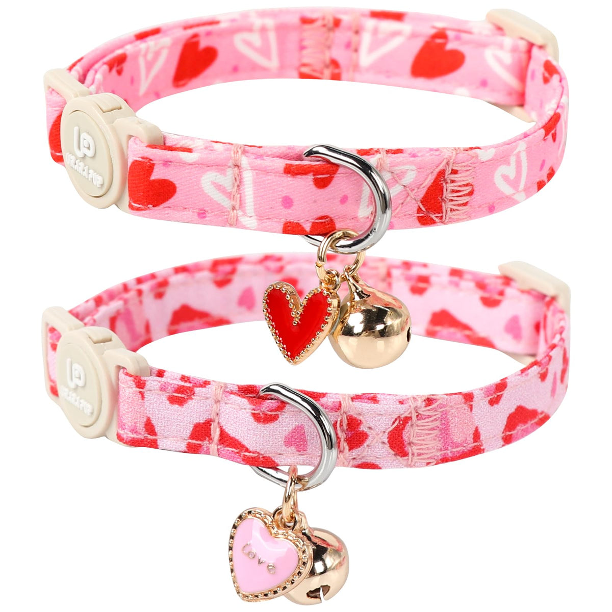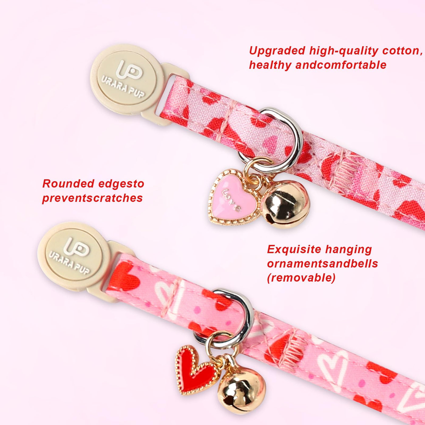 Up Urara Pup Cat Collar, 2Pack Valentine'S Day Kitten Collars Cute Breakaway Cat Collar With Bell, Red Love Heart Pink Hearts Ki