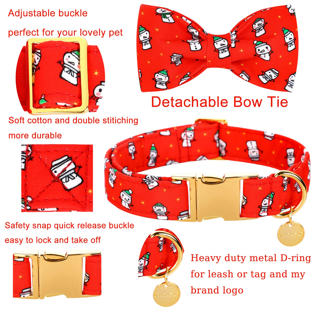 Product Description:Christmas Dog Collar: Red Dog Bow Tie Collar With Snowman Pattern. Snowman Collar Is Suitable For Your Puppies. A Typical Christmas Gift Representative That Spreads Holiday Atmosphere. The Up Urara Pup Store 'S Latest Offering Is A Collar That Fits Perfectly With Christmas. The Snowman Dog Collar Also Known As The Winter Dog Collar. Snowman Dog Collar Is A Classic Element Of Holiday And Helps Your Puppy Attend Festival In A More Fashionable Way. Also Work As Thanksgiving Dog Collar. Five Different Sizes For Small Dogs, Medium Dogs, Large Dogs, Boy Dogs, Girl Dogs And Cats. Fits Almost All Cats And Dogs. Check The Size Chart In The Pictures To Make Sure You Order The Correct Size. If It Doesn 'T Fit, Let Us Know And We 'Ll Correct It. Removable Bow Tie Collar: The Bow Tie Is Also Snowman Element, With A Strong Holiday Atmosphere . Snowman Pattern Design: We Combined All The Typical Elements Of Holiday And Chose The Most Suitable Element For The Collar From Them - The Snowman And Red Color. The Dog Collar Is The Most Representative Element On Holiday. It Is The Best Holiday Gift For Your Dog/Friend Who Has A Dog. Applicable Occasions: Pet Collars Make Your Dog More Beautiful, Cute And Stylish. Classic Snowman Collar Very Suitable Small Medium Large Dogs To Wear For Various Parties, Christmas, Thanksgiving, Holiday, Family Picnics And Other Occasions.