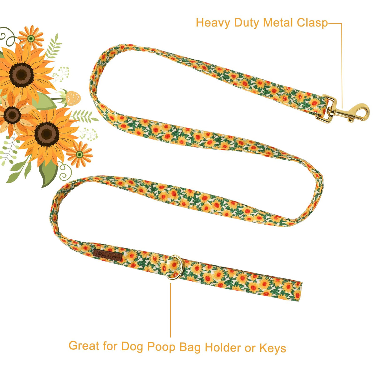 Product Description: Fall Dog Leash: Dog Leash With Sunflower Patterns. Sunflower Dog Leash Is Suitable For Your Puppies. A Typical Gift Representative That Spreads Holiday Atmosphere. The Up Urara Pup Store'S Latest Offering Is A Collar And Leash That Fits Perfectly With Fall. Fall Dog Leash Is A Classic Element Of Holiday And Helps Your Puppy Attend Festival In A More Fashionable Way. Also Work As Holiday Dog Leash. Three Different Sizes For Small Dogs, Medium Dogs, Large Dogs, Boy Dogs, Girl Dogs. Fits Almost All Cats And Dogs. Check The Size Chart In The Pictures To Make Sure You Order The Correct Size. If It Doesn'T Fit, Let Us Know And We'Ll Correct It. Sunflower Pattern Design: We Combined All The Typical Elements Of Holiday And Chose The Most Suitable Element For The Dog Leash From Them. The Dog Leash Is The Most Representative Element On Holiday. It Is The Best Holiday Gift For Your Dog/Friend Who Has A Dog. Applicable Occasions: Pet Leash Make Your Dog More Beautiful, Cute And Stylish. Classic Pet Leash Very Suitable Small Medium Large Dogs To Wear For Various Parties, Fall, Birthday Party, Holiday, Wedding, Family Picnics And Other Occasions.