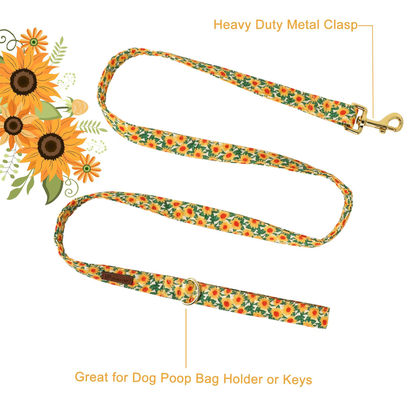 Up Urara Pup Fall Dog Leash Match Sunflower Collar, Sturdy Durable Hawaii Cotton Training Leash For Small Medium Large Dogs, Lea