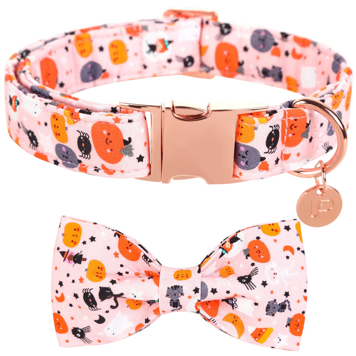 Up Urara Pup Halloween Dog Collar With Bow Tie, Pumpkin Cotton Bowtie Collar For Small Girl Dog, Female Halloween Bow Tie Collar With Durable Metal Buckle, Adorable Pet Collar, S, Neck 10-16In