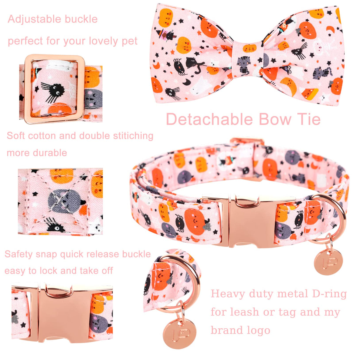 Removable Bow Tie/Flower Collar: The bow tie are also pumpkin spider skull element, with a strong holiday atmosphere .