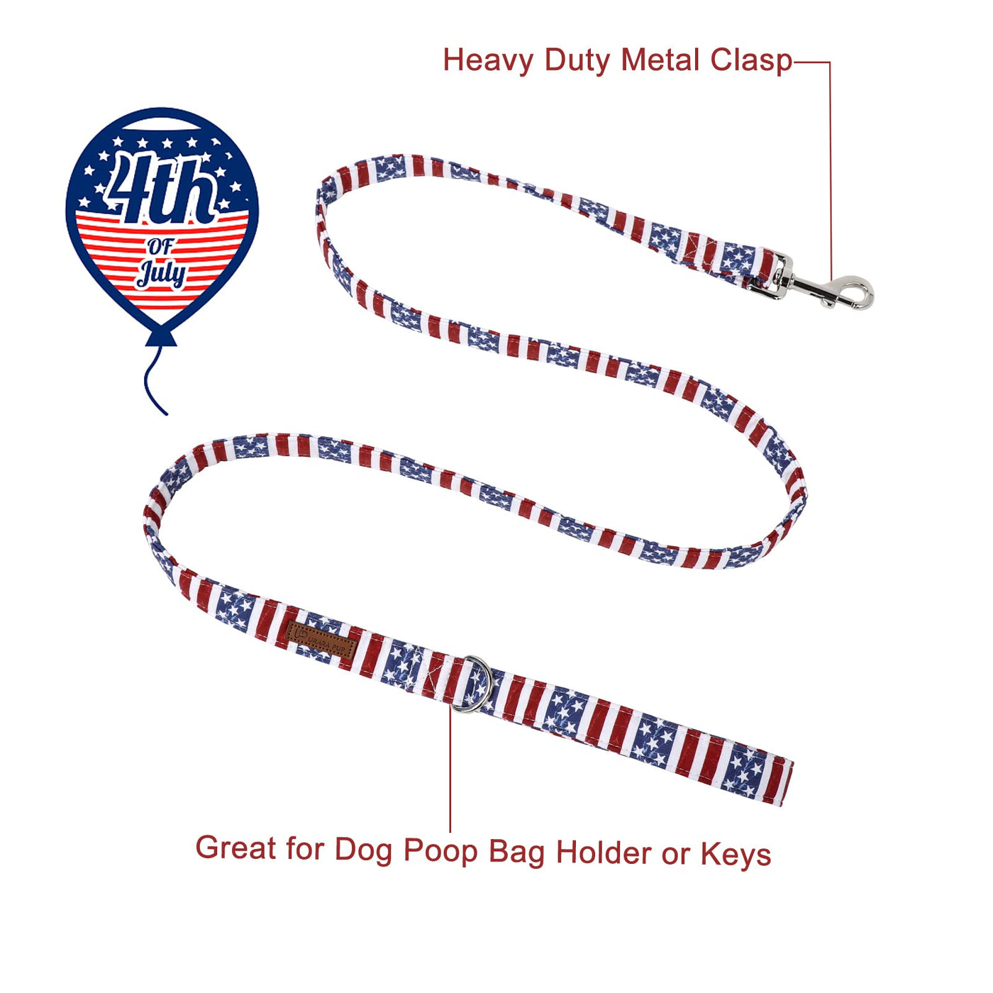 Up Urara Pup Patriotic Dog Collar & Leash - American Flag Design, Sturdy & Durable Cotton For Small To Large Dogs