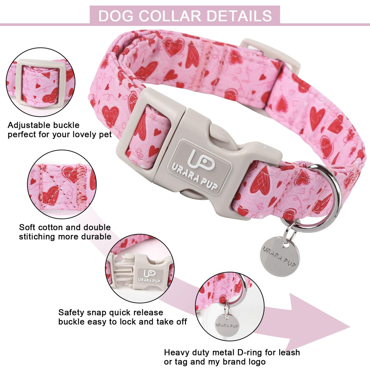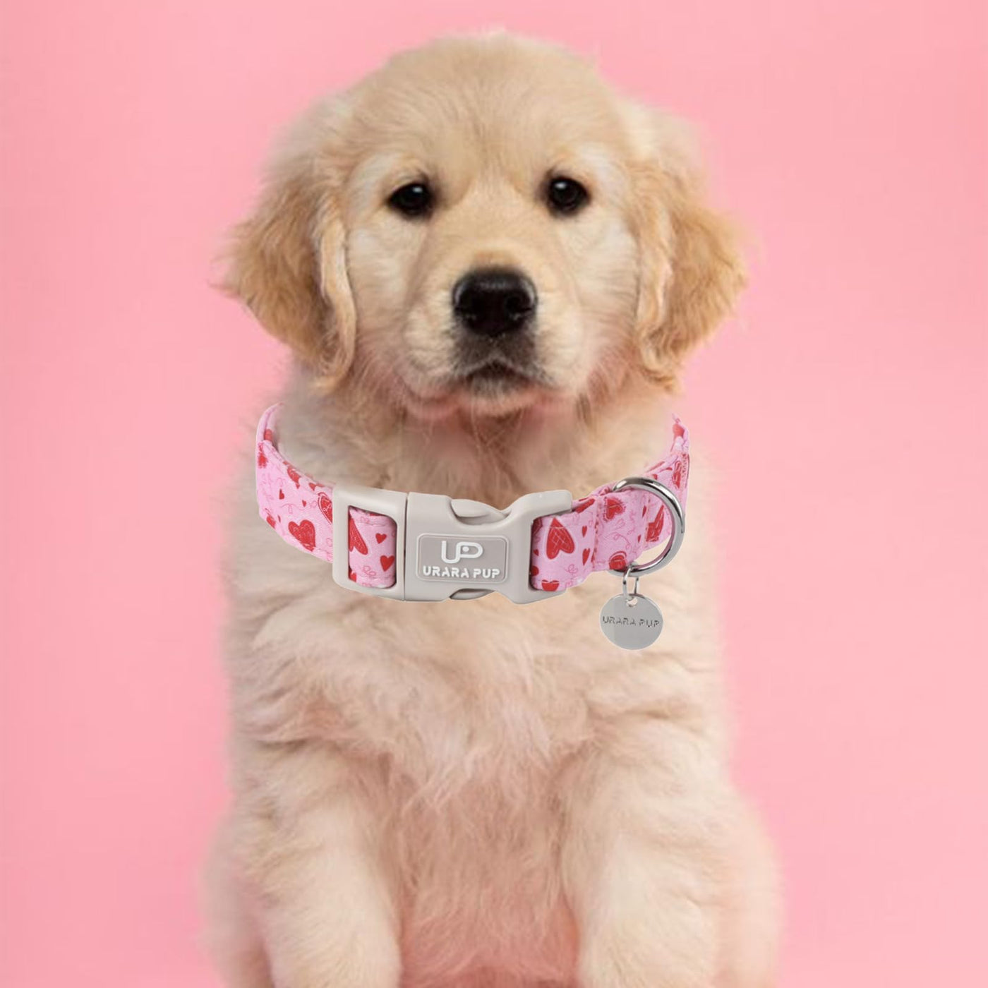 Up Urara Pup Pink Heart Dog Collar With Quick Release - Valentine'S Day Gift Collar For Puppy Girl Boy Dogs
