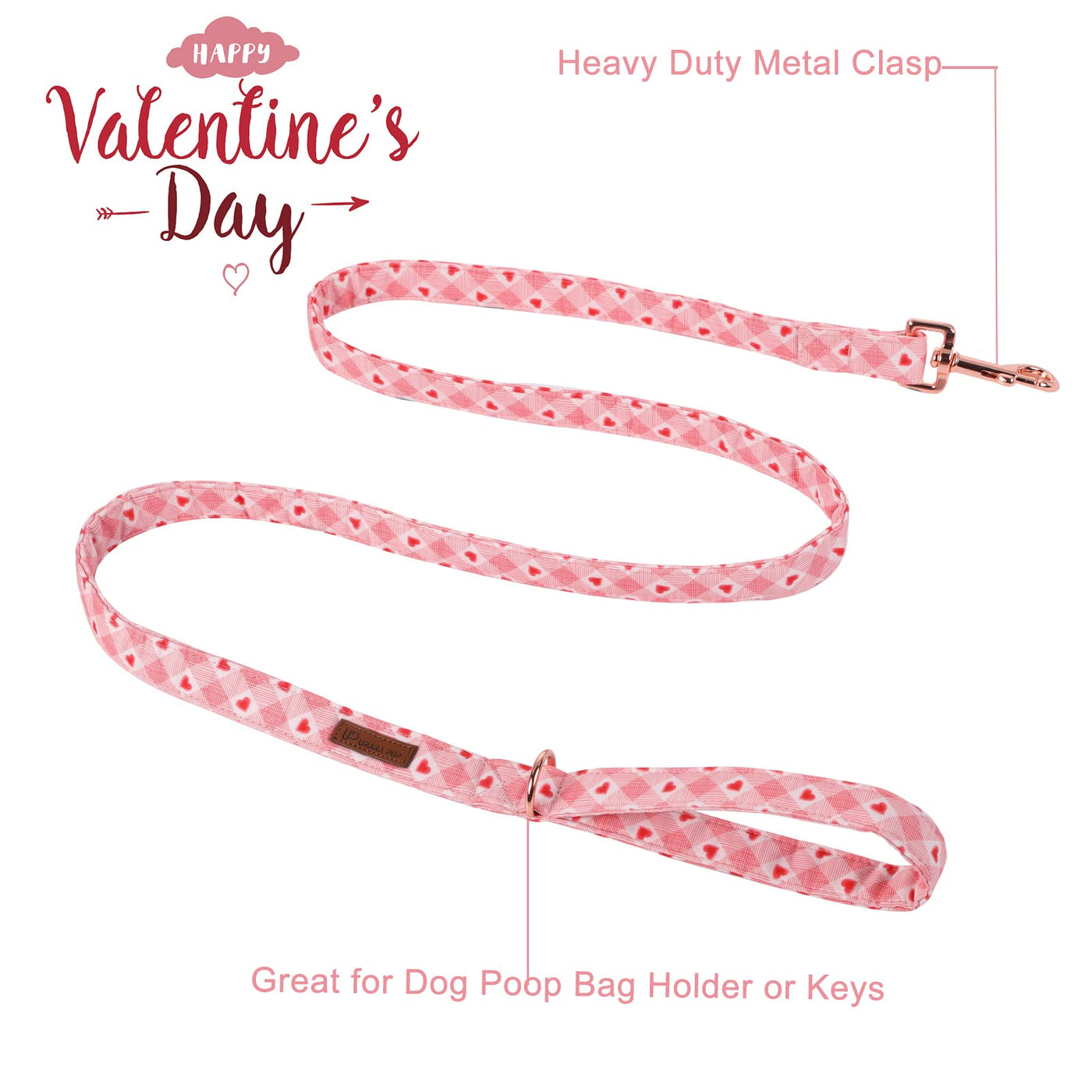 Up Urara Pup Valentine Dog Leash Match Dog Collar, Sturdy Durable Valentines Cotton Dog Leash, Plaid Heart Wedding Dog Training