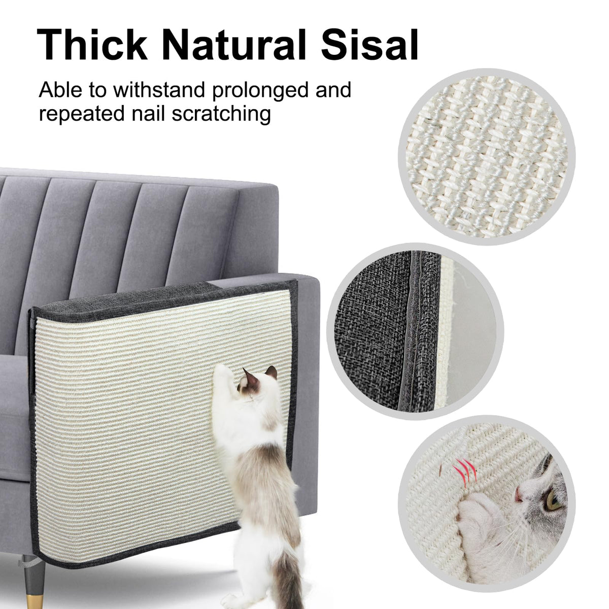 Upgraded Cat Scratch Furniture Couch Protector With 27.6L*19.6W Natural Sisal For Protecting Large Area Couch Sofa Chair